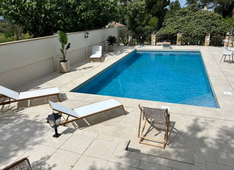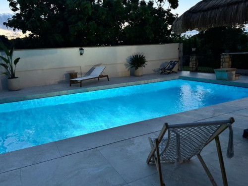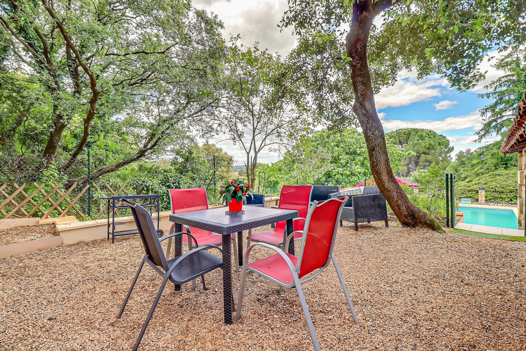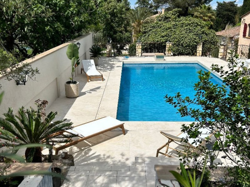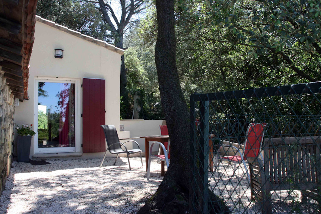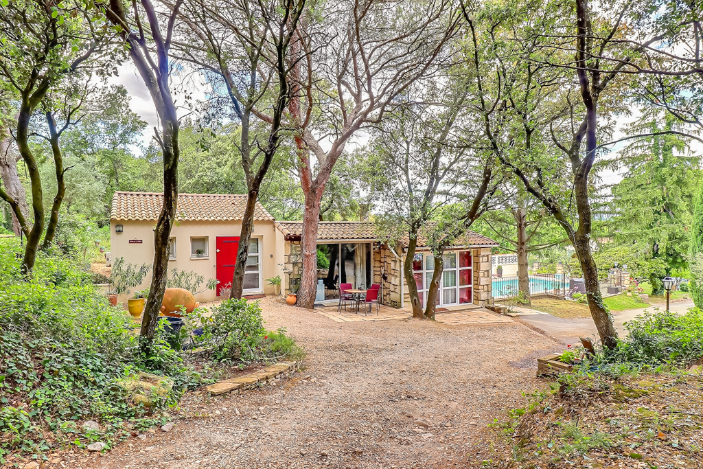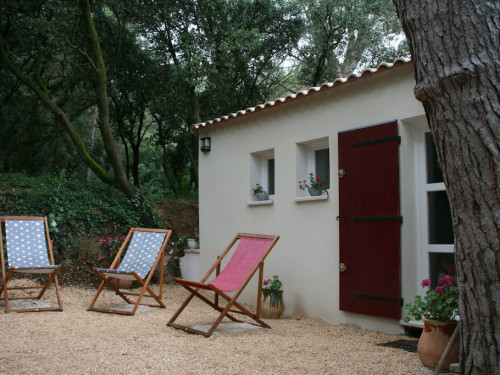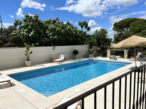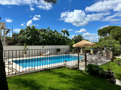 Superbe Mazet indépendant de 60 m², à l'ombre des pins, bordé d'une grande piscine et idéalement situé pour passer des vacances paisibles dans le Sud, près de la voie verte (20m) pour balade à pied ou à vélo.