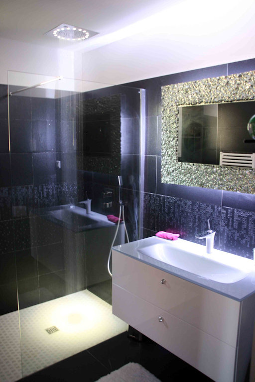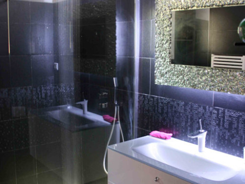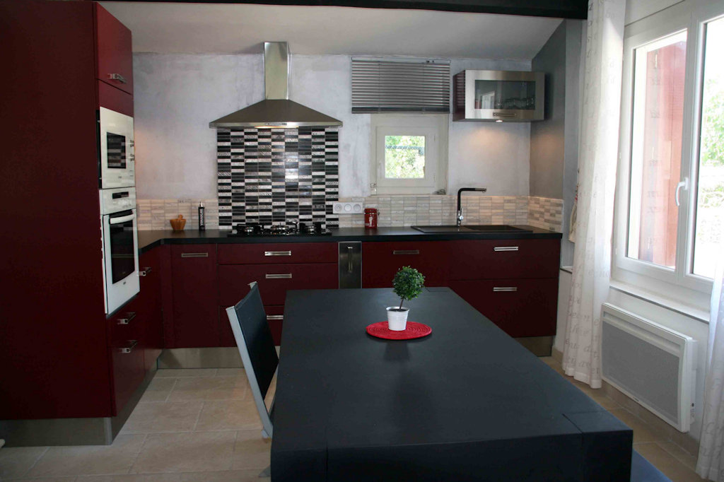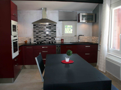 - sa cuisine équipée : réfrigérateur, congélateur, plaque, four, micro-ondes, lave vaisselle, cafetière, bouilloire …,