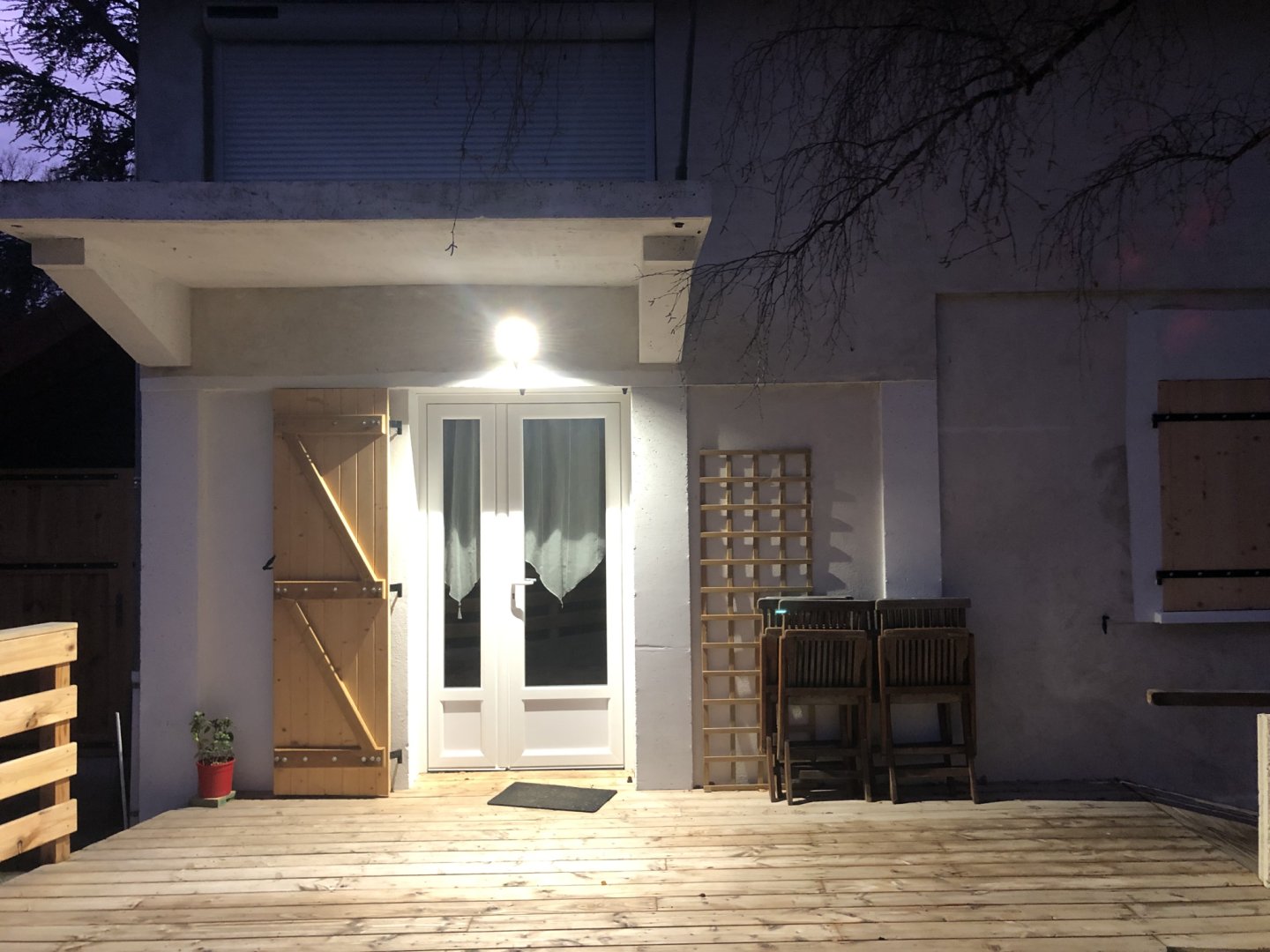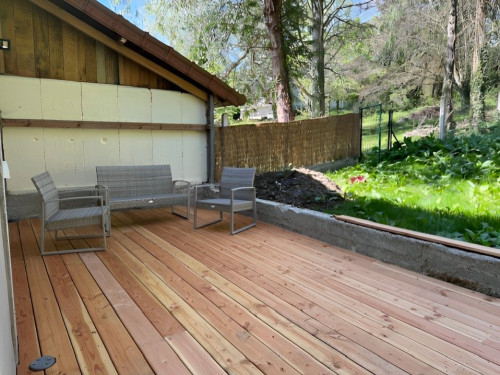 Deux terrasses en bois vous permettront de profiter des extérieurs aux différentes heures de la journée :) N'hésitez pas à vous y "poser" en fin de journée pour guetter les chevreuils dans le pré d'en face, ou écouter les oiseaux autour de vous...
