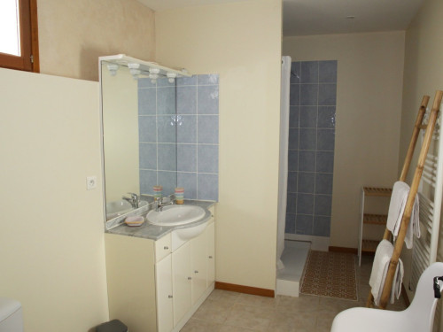 Salle de bains 1 : Douche à l'italienne, Lavabo, Sèche-cheveux, Sèche-serviettes