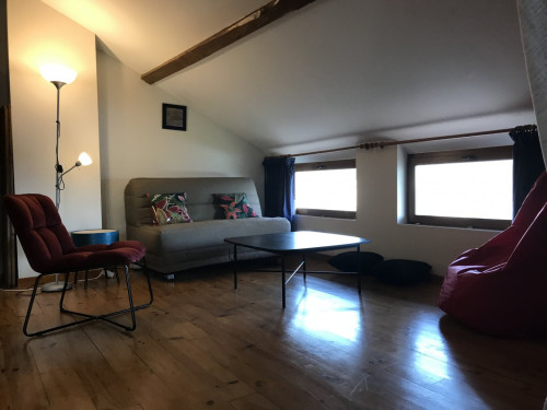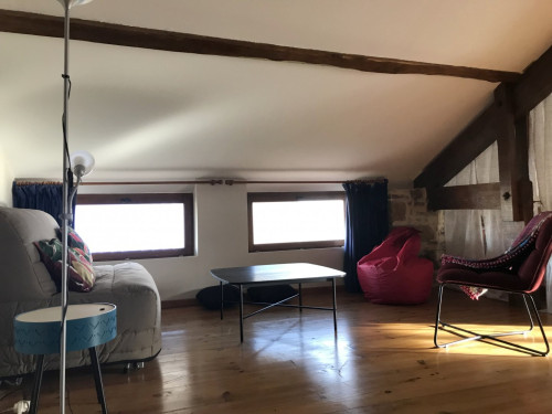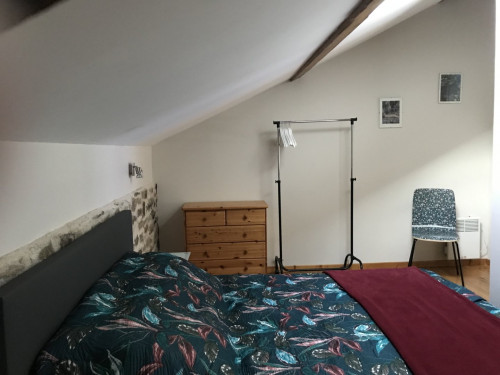 Étage : 2 chambres dont une grande avec espace salon , 1 salle de bains