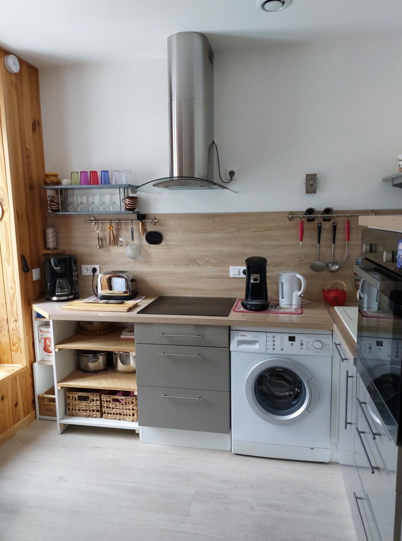 Vous pouvez préparer vos repas dans la cuisine bien équipée, puis les déguster autour de la table prévue pour 6 convives en profitant de la vue sur la montagne