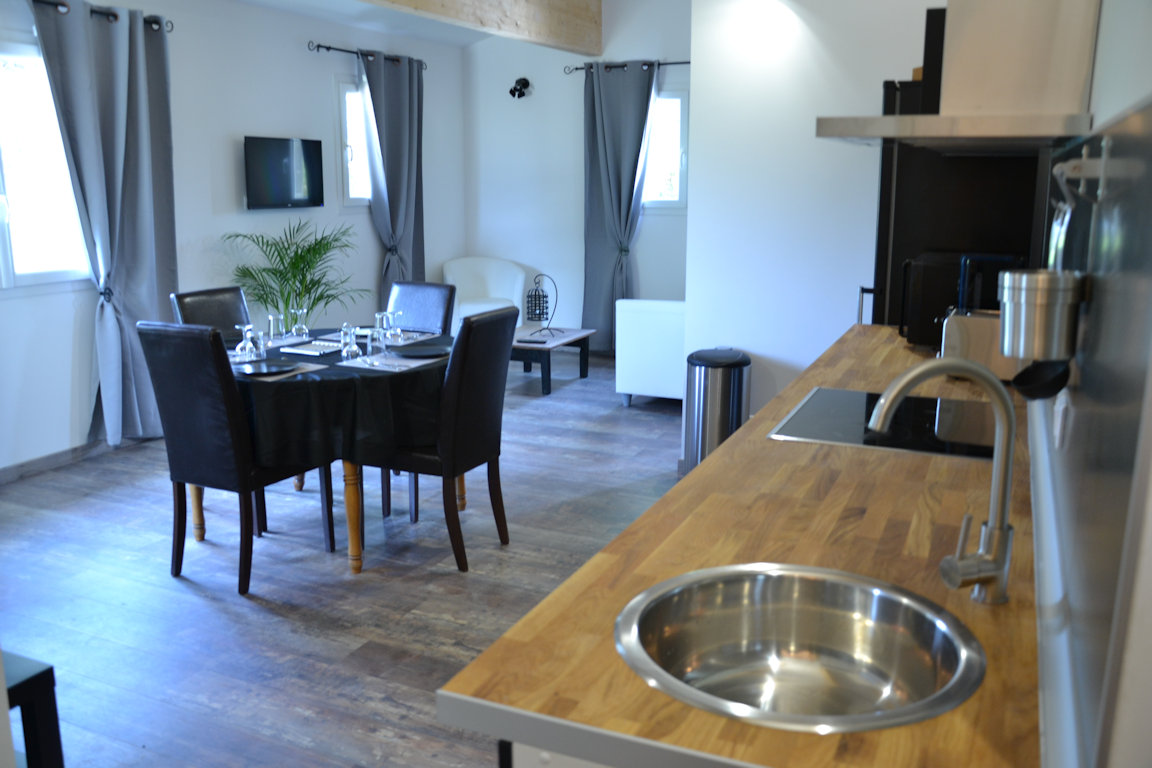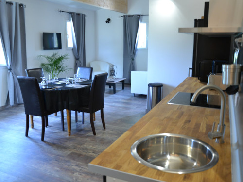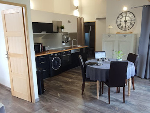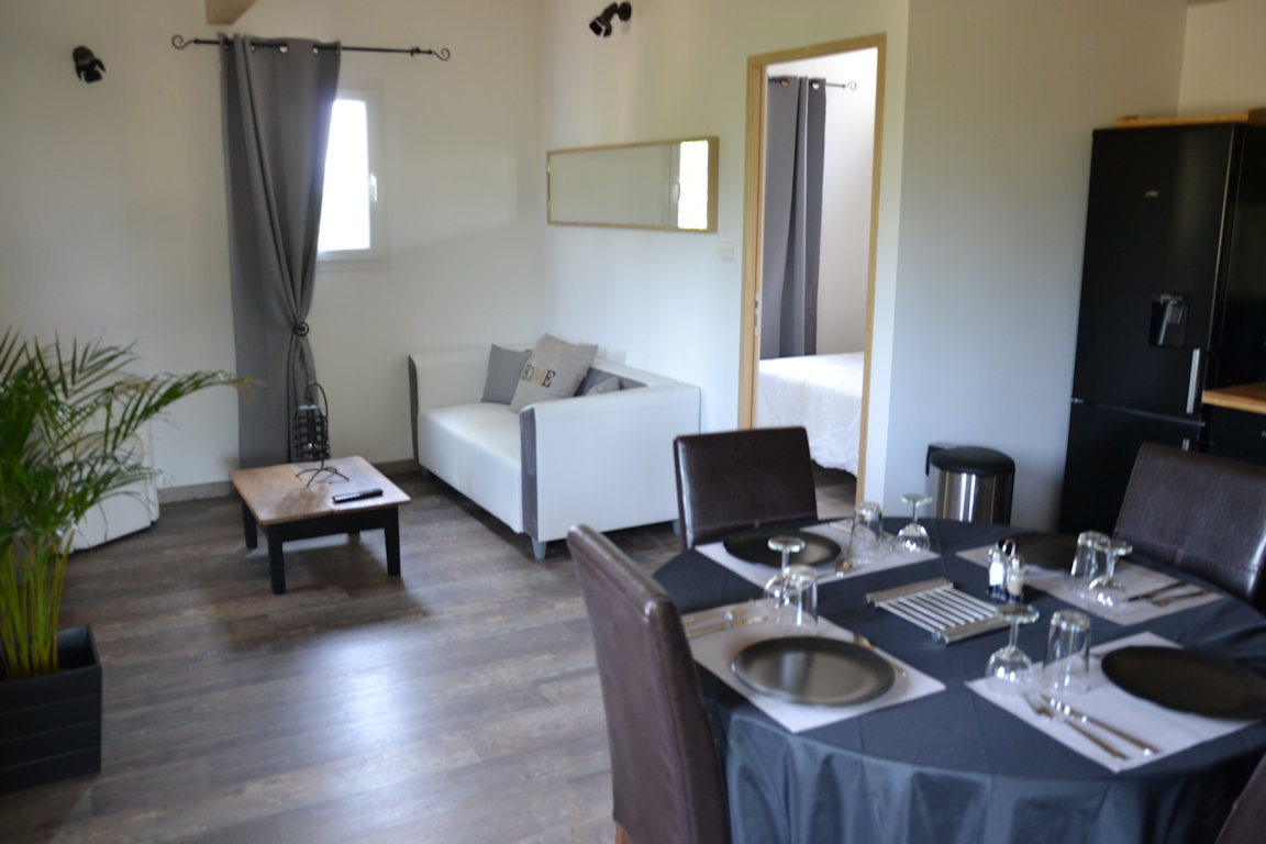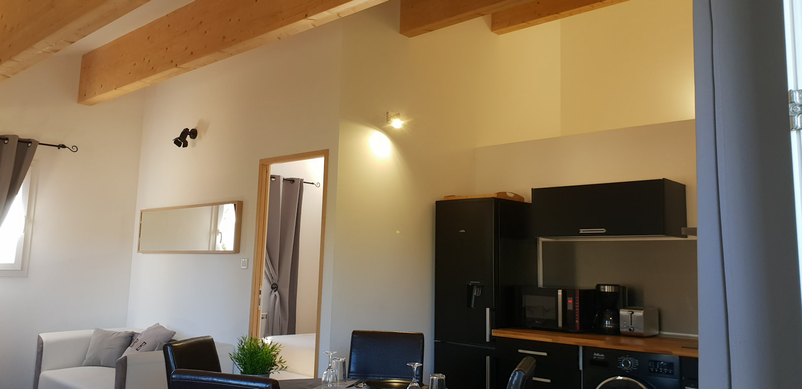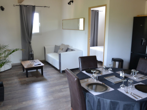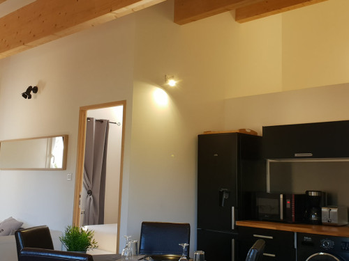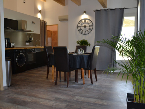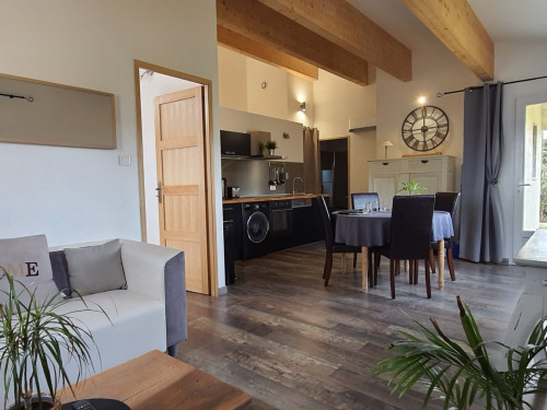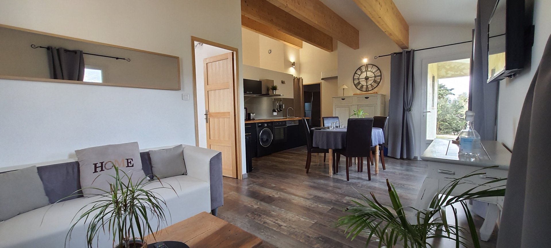 Loue superbe gîte neuf et tout équipé, situé à 2 km de Bédoin dans une grange aménagée, composé de 2 chambres avec TV, 1 salle de bain et d'un grand salon salle à manger avec cuisine, bar et écran plat.
