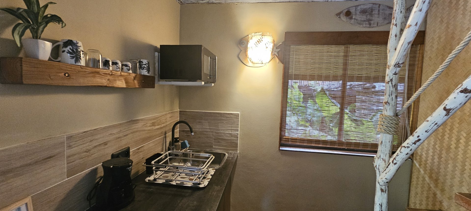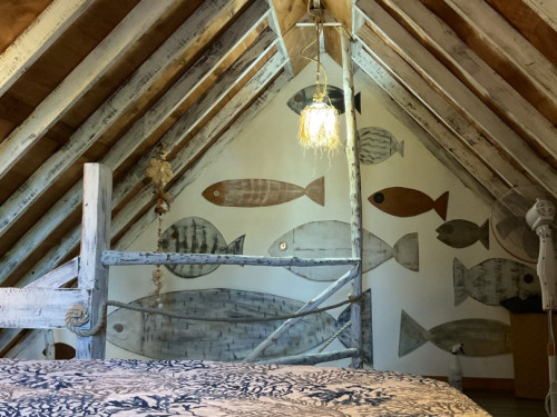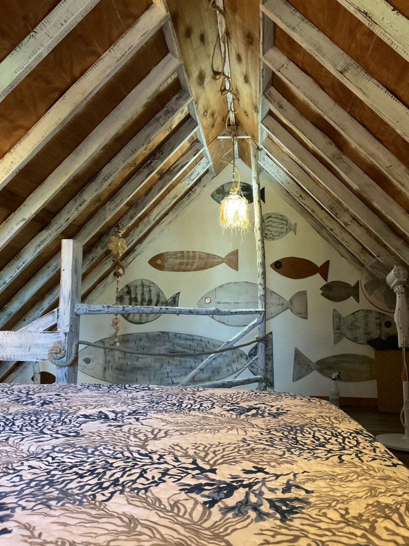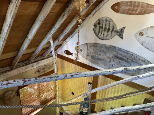 Dès votre arrivée, les poissons qui décorent les murs du logement vous inviterons à nager avec eux dans le bleu turquoise de lagon de Moorea.