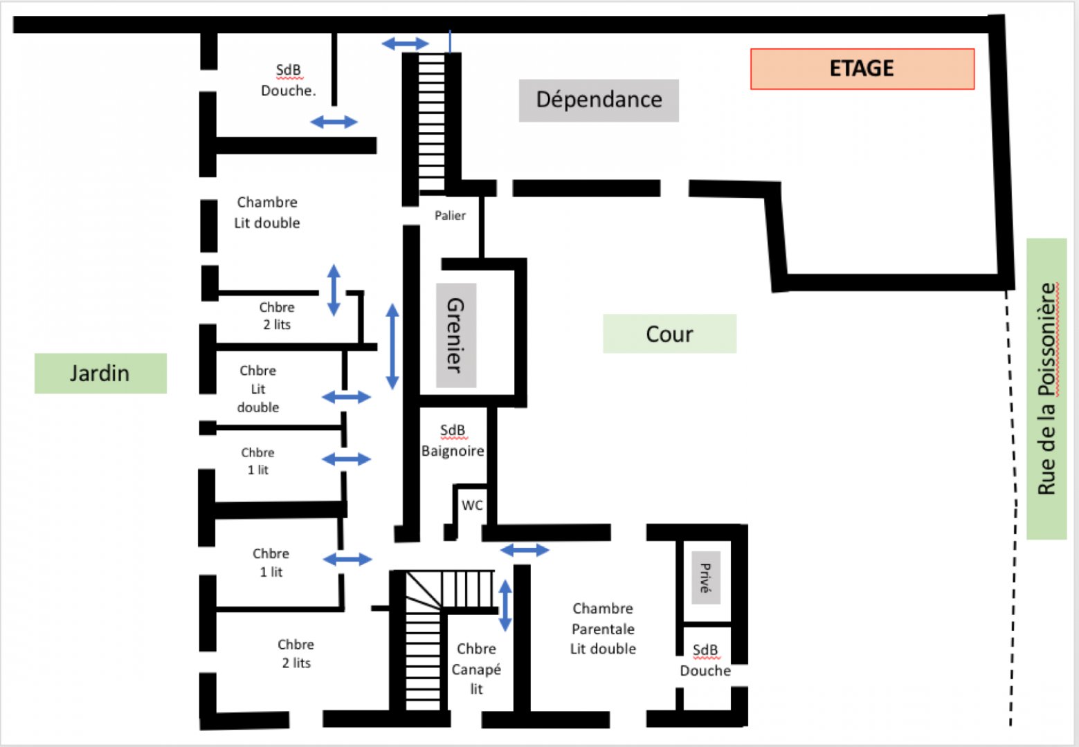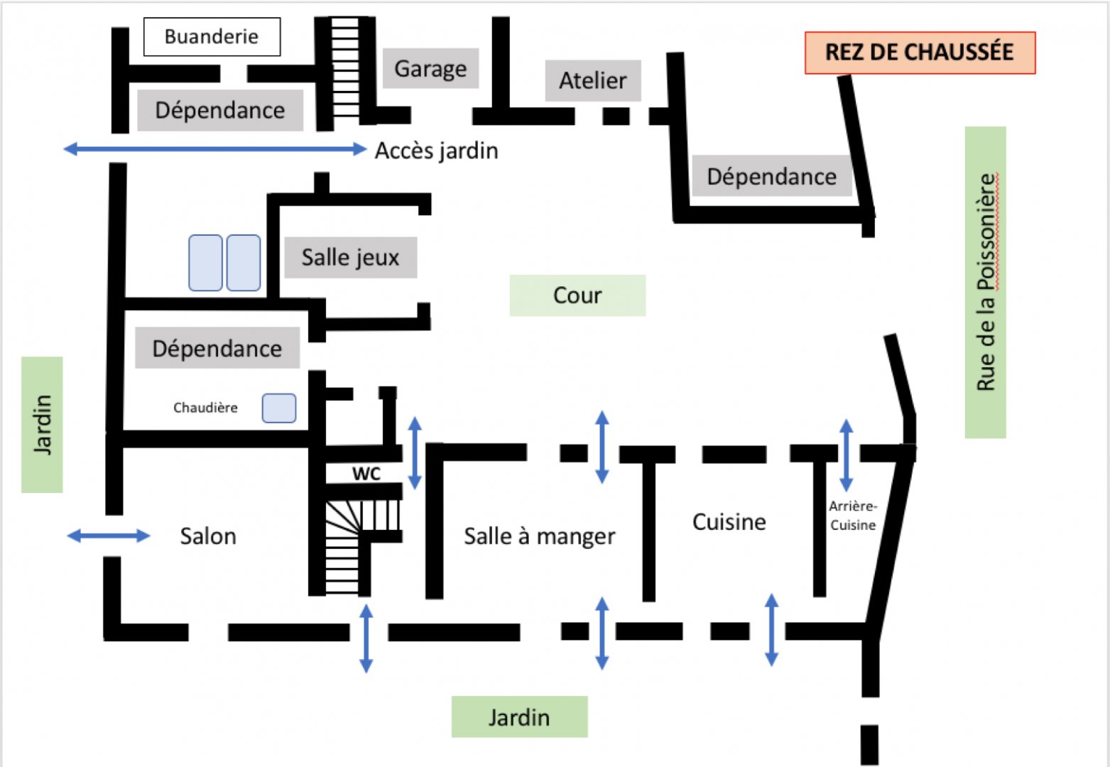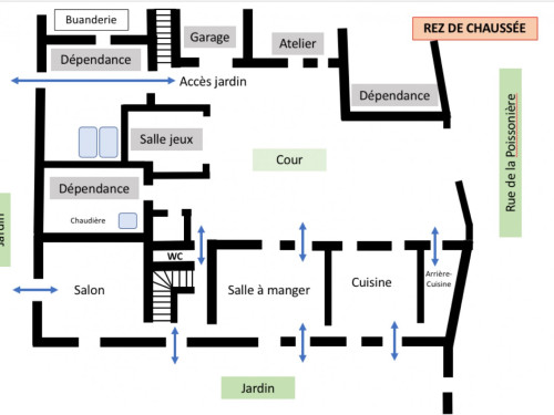 Ancien logis de la Poissonnière, clos de murs, idéal pour des réunions familiales.
