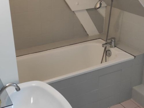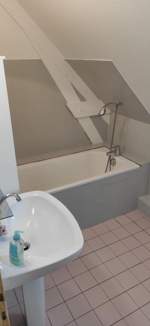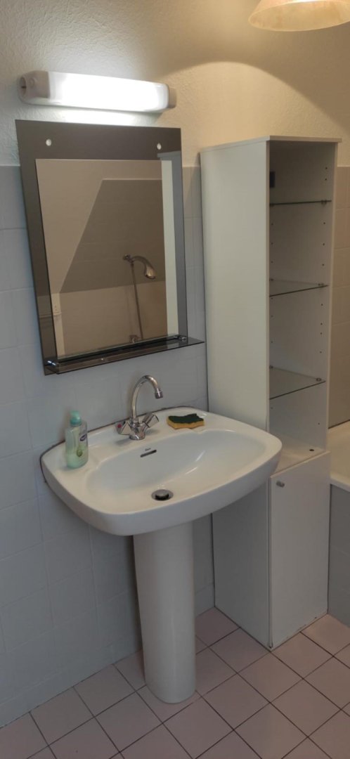 - salle d'eau avec lavabo, baignoire, WC et seche cheveux