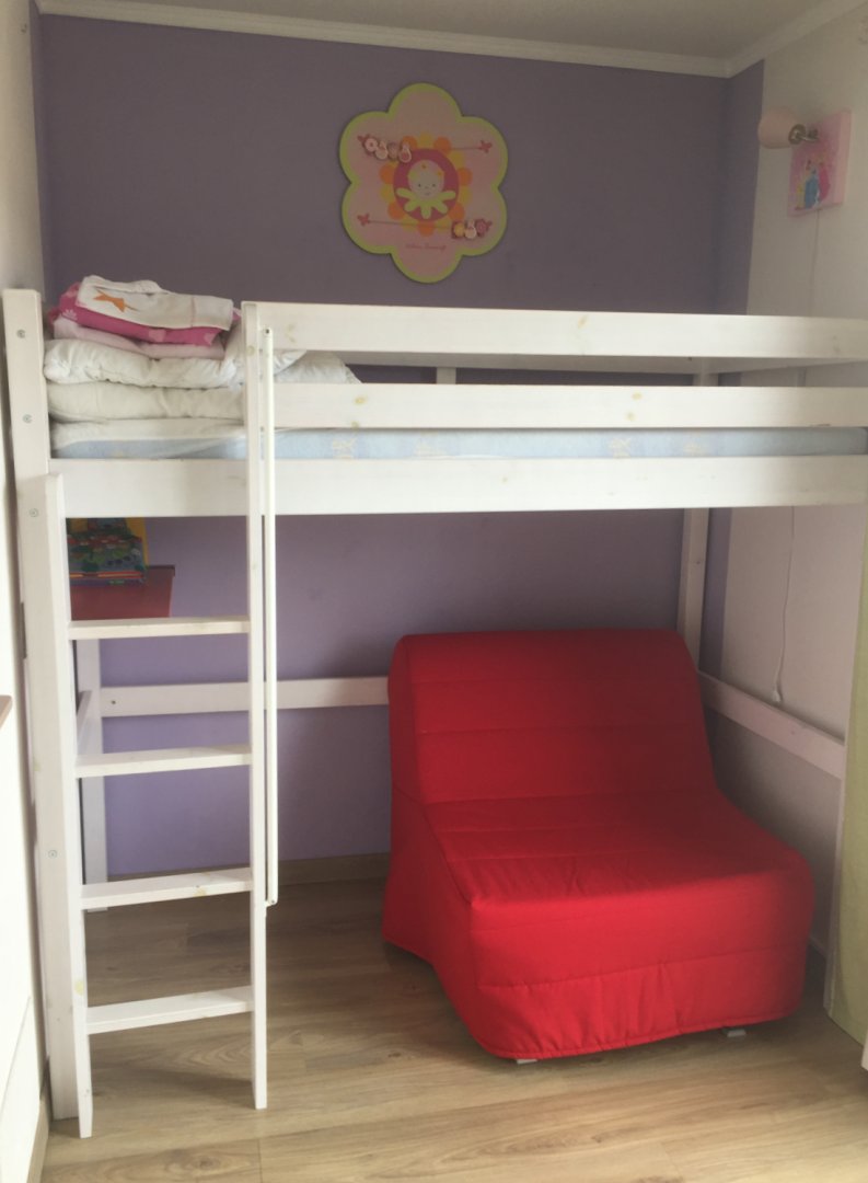 3 chambres indépendantes à l'étage : 1ère étage (escalier colimaçon) une chambre lit 160 et 1 chambre avec un lit 90cm (mezzanine ou BZ) 2ème étage (escalier pas décalé) 1 lit en 140