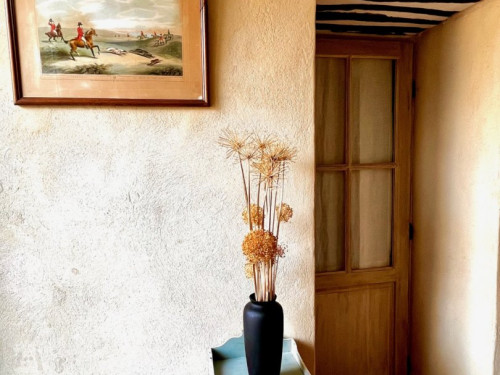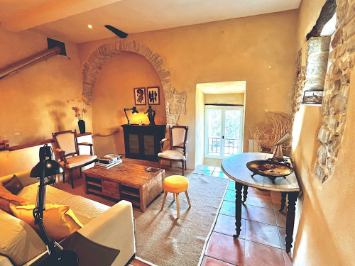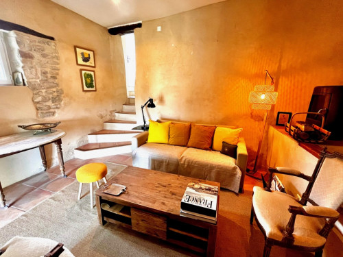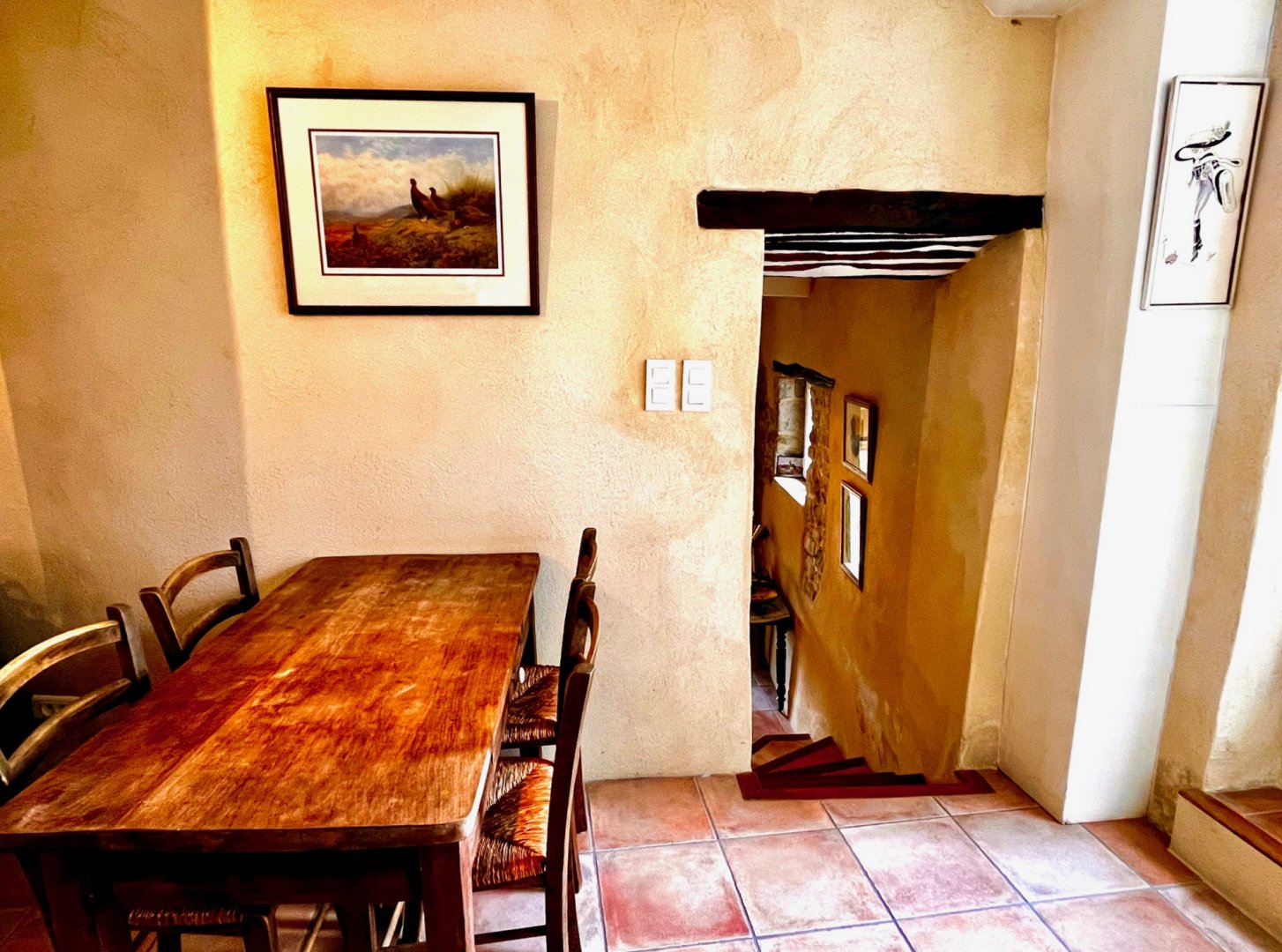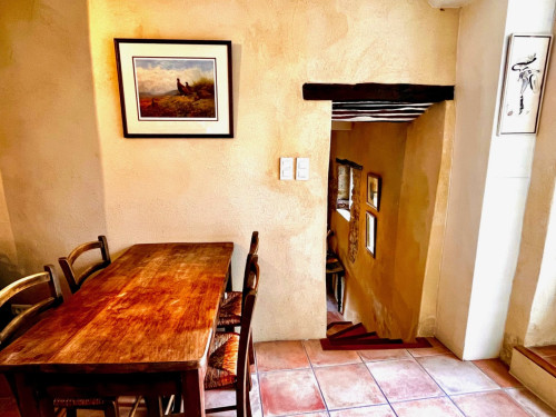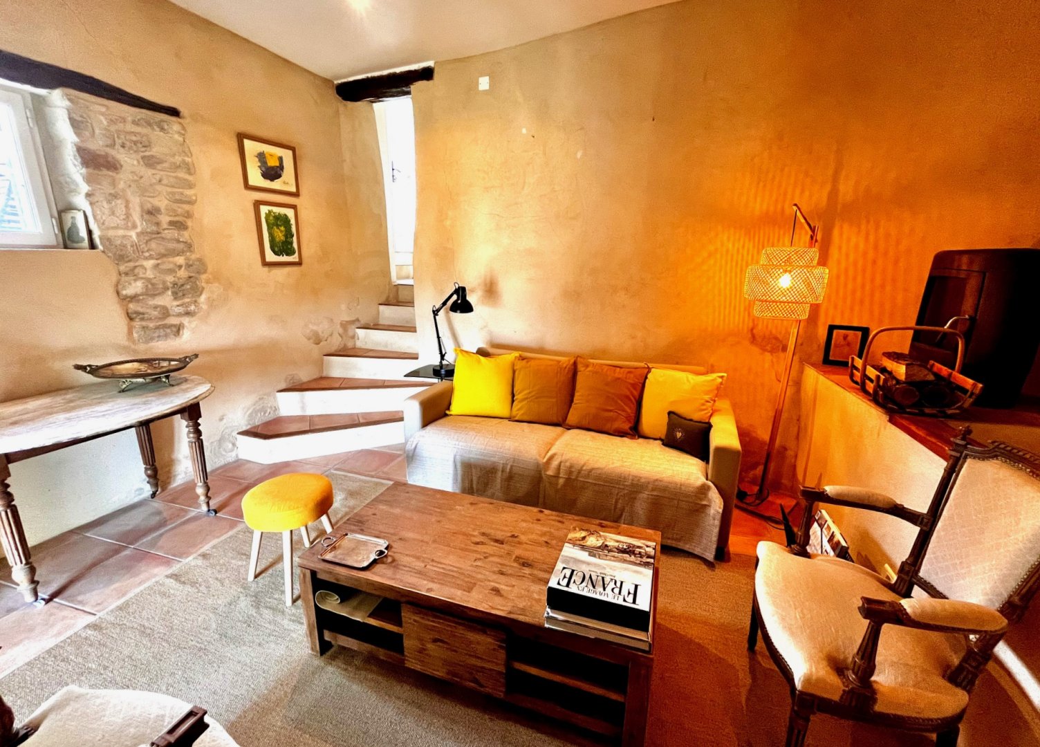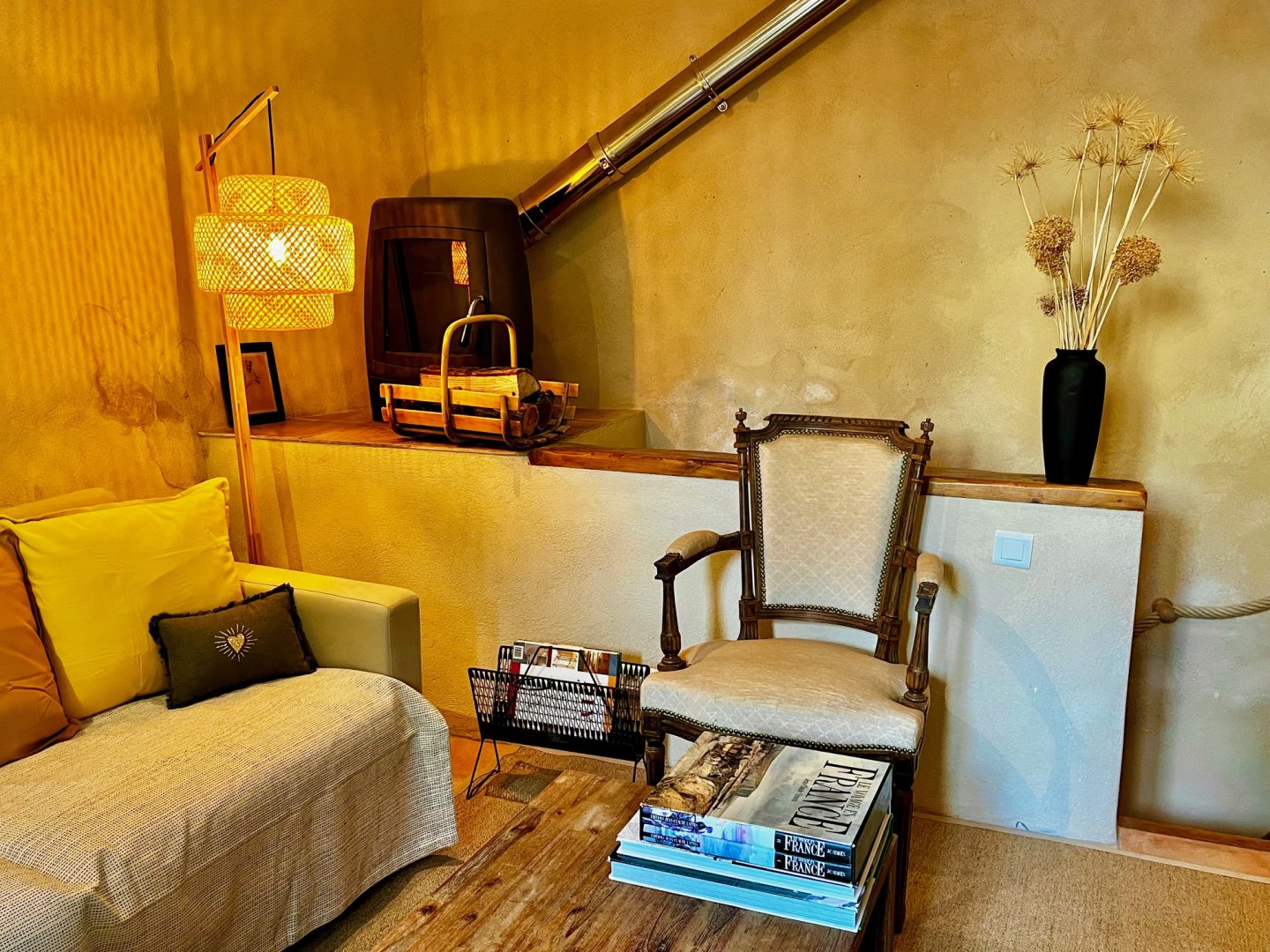 Le salon très confortable a beaucoup de charme grâce aux vieilles pierres apparentes et à son poêle à bois l’hiver. L’été les murs très épais des remparts gardent la fraîcheur à l’intérieur de la maison.