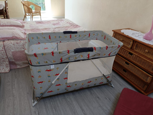 Pour les personnes à mobilité réduite, l'entrée de la maison a une marche, puis une petite marche. Les chambres ne sont pas accessible car l'accès s'effectue par un escalier en colimaçon (réservé aux jeunes ou seniors agiles). La pièce à vivre est spacieux avec un canapé lit. Le WC est accessible par une pente douce ainsi que la cuisine et la salle de bain. La douche a une marche. Pour aller sur la terrasse, il y a une petite marche. Pour aller au jardin, il y a 3 marches. N'hésitez pas à me contacter pour des périodes plus courtes / longues.