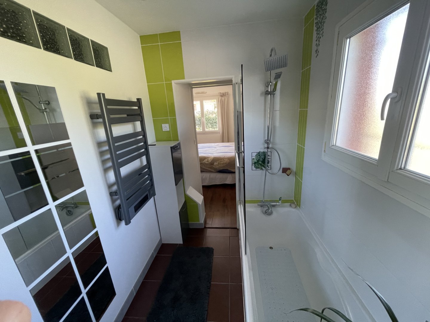 Salle de bains 2 : Douche, Baignoire, Lavabo, Sèche-cheveux, Sèche-serviettes