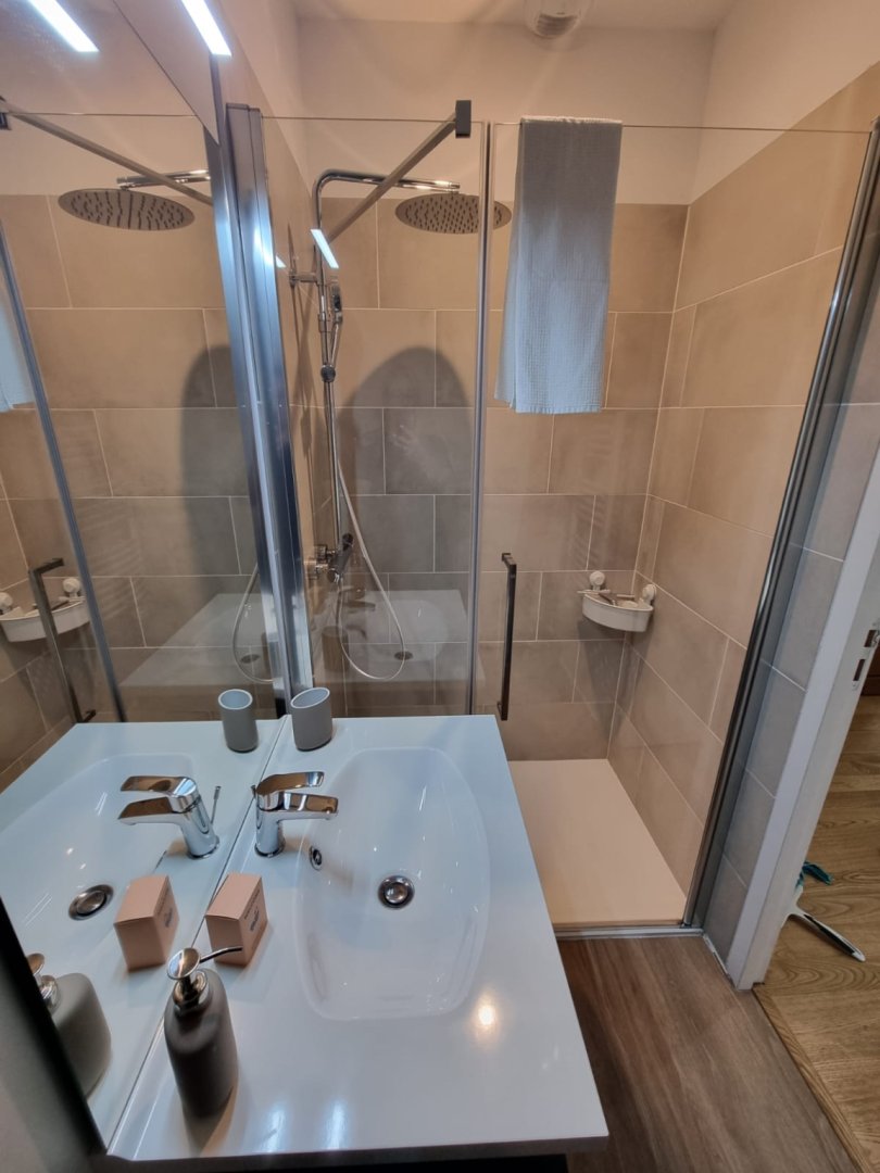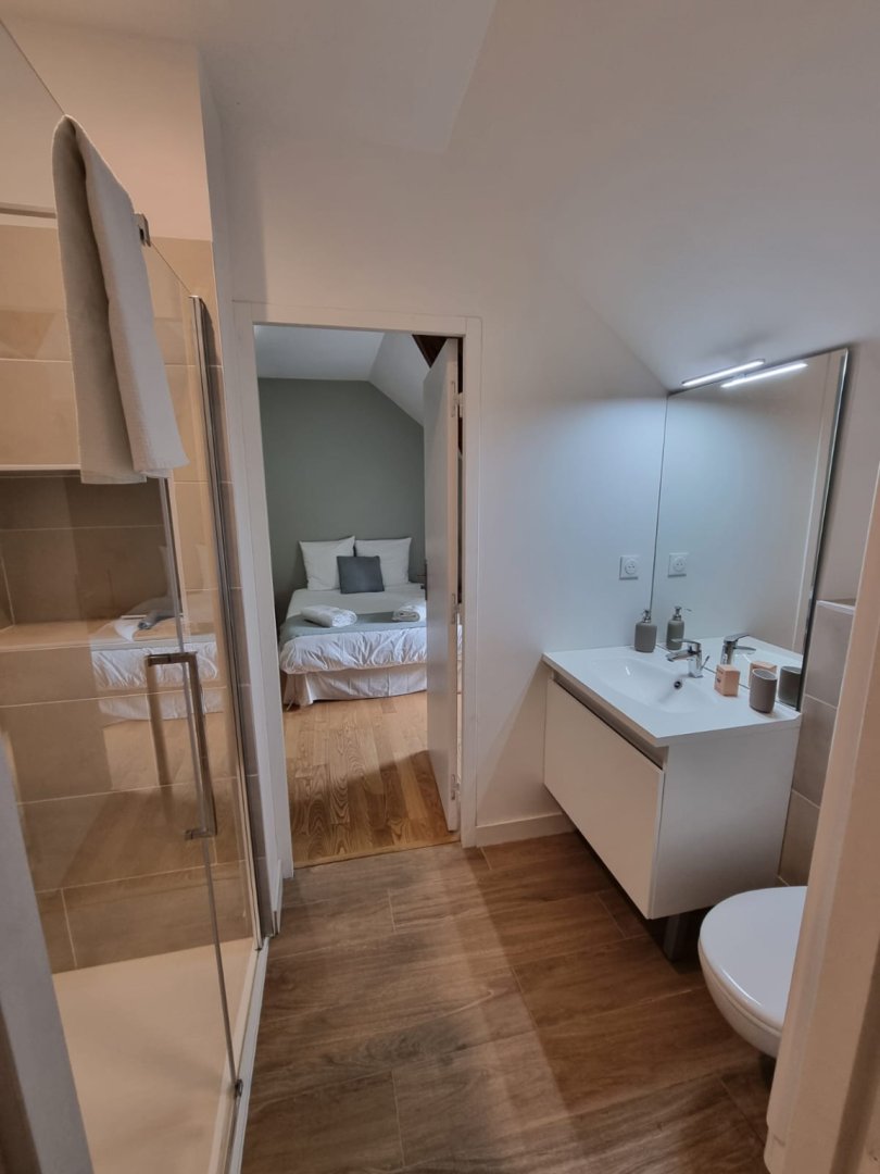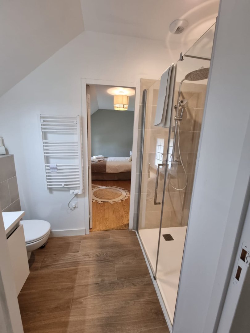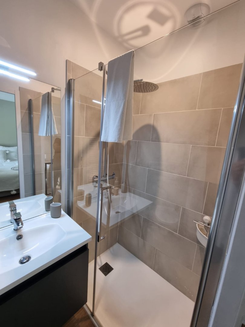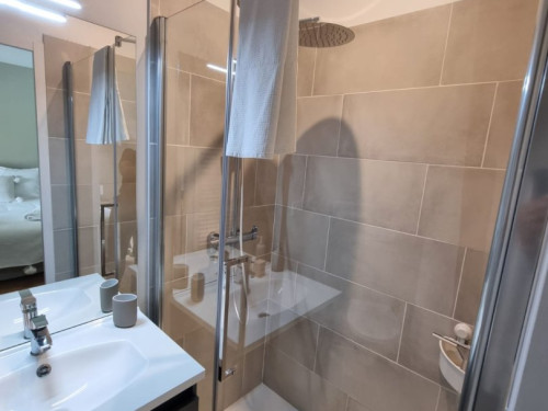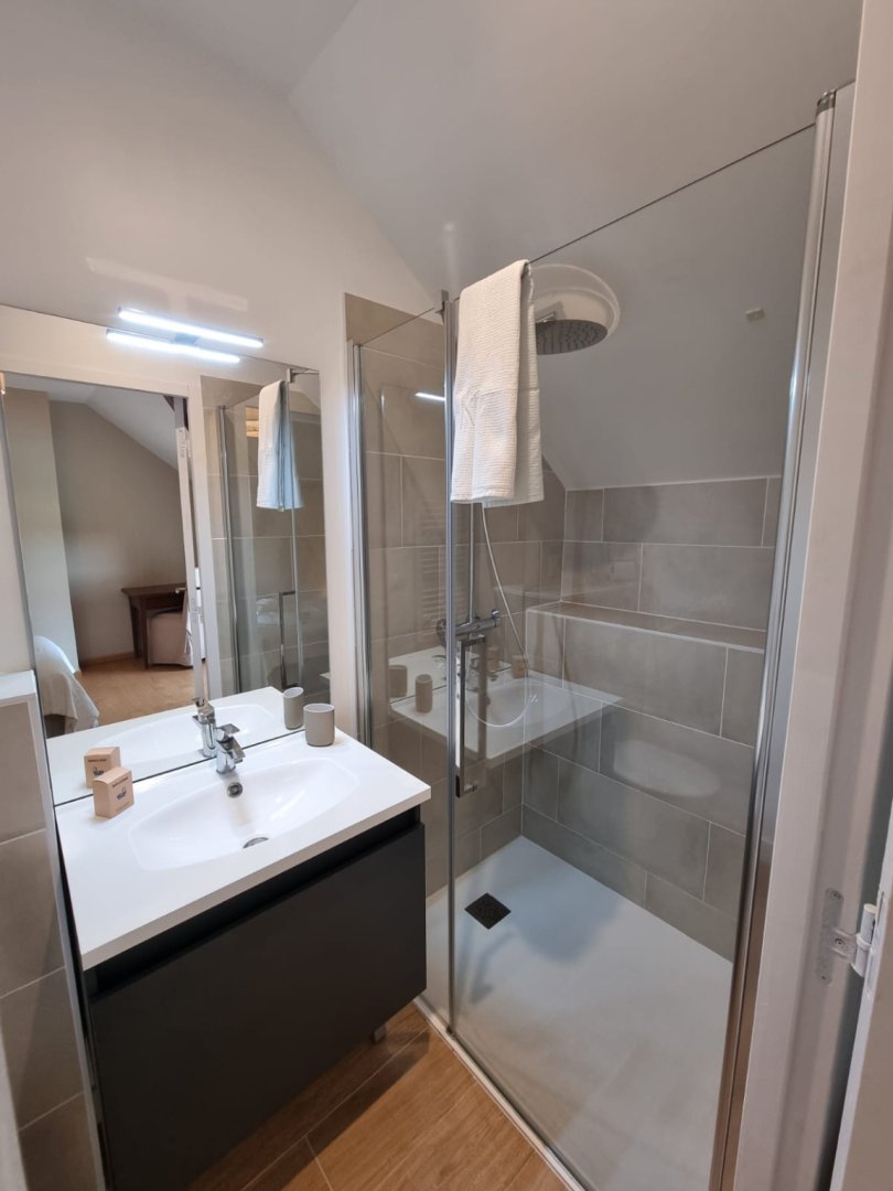 Salle de bains 3 : Douche à l'italienne, Vasque, Sèche-cheveux, Sèche-serviettes