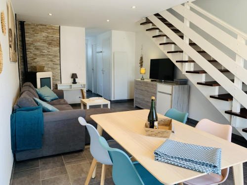 La maison de 60 m² est entièrement rénovée et confortable pour 4 personnes. La fibre permet de télétravailler sans problèmes de connexion.