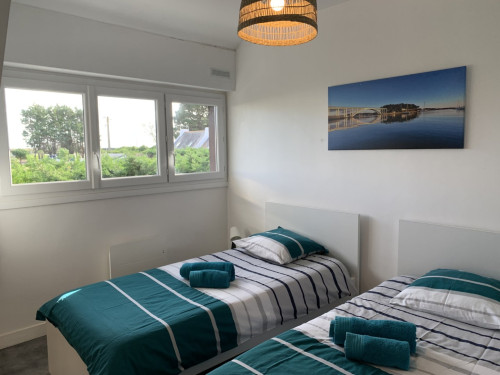 La villa du pêcheur vous accueille au cœur de la presqu'île de Gâvres, à 50 m de la plage et au pied de l'embarcadère de Gâvres- Port-Louis, à 400 mètres des commerces pour des vacances au calme et les pieds dans l'eau.