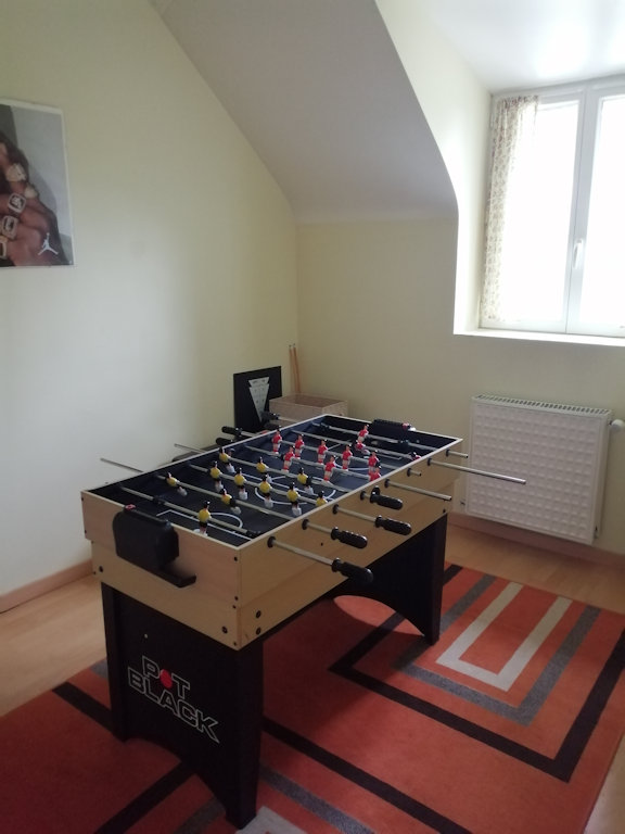 Au premier étage, deux chambres avec 1 lit double, une troisième chambre avec 2 lits simples, une salle de jeux pour les enfants et un WC.