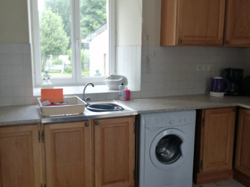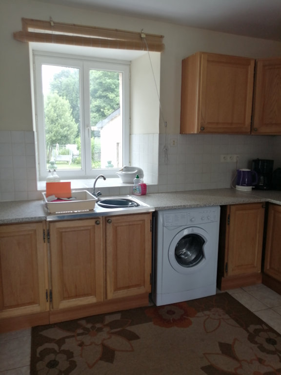 Quand vous pénétrez dans la maison de Merlin, vous êtes dans une grande pièce salon / séjour / cuisine ouverte et tout équipée, avec un poêle dans la cheminée. Deux radiateurs électriques à récupérateur de chaleur équipent cette grande pièce d'environ 45 m².