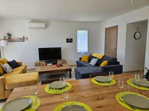 Cette maison de vacances comporte 3 chambres, 1 salle de bains, du linge de lit, des serviettes, une télévision à écran plat, une cuisine entièrement équipée et une terrasse offrant une vue sur la piscine.