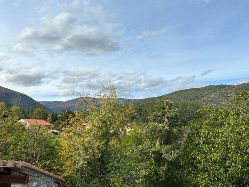 Petite maison récemment rénovée, offrant une vue panoramique sur les montagnes.