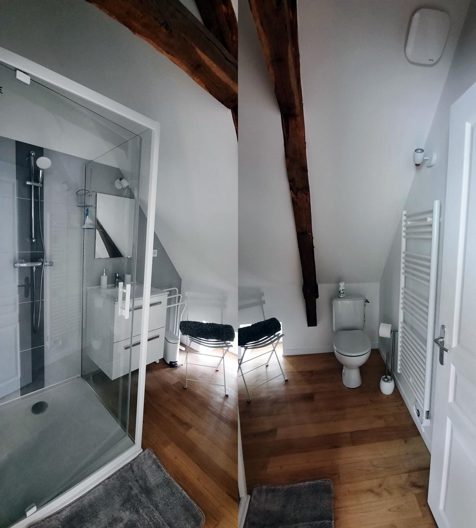Étage : salle de bain et chambres : "Bergeronnette" (lit 160x200), "Sittelle" (2 lits 90x190)