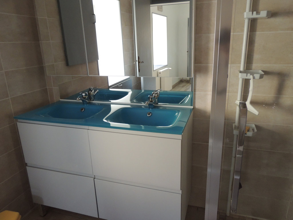 - entrée/buanderie : évier, lave-linge, fer et table à repasser, frigo avec congélateur et aspirateur
