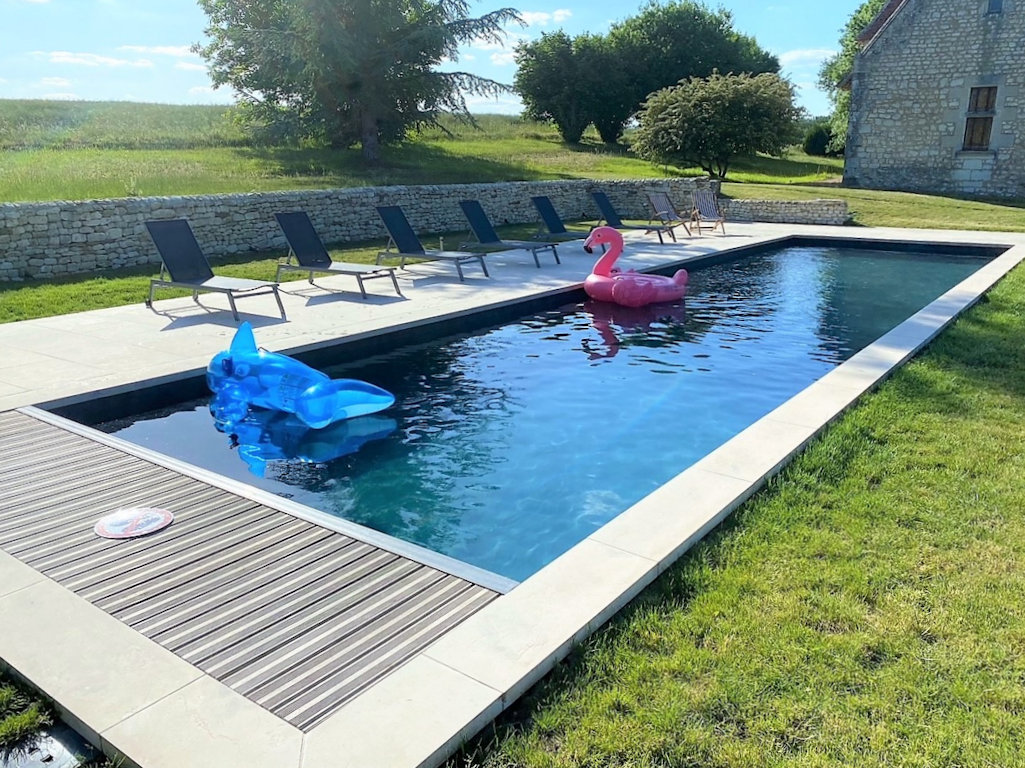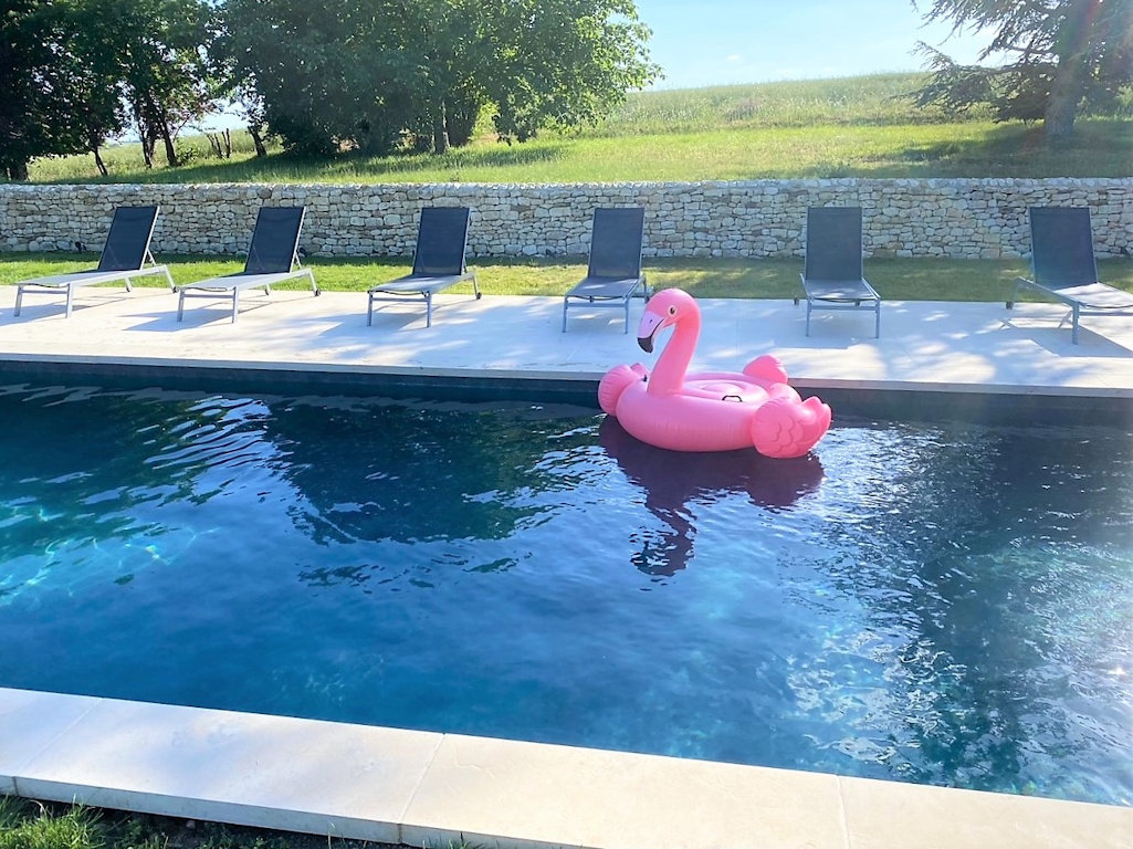 - 1 grande piscine privative (15 x 4 m) chauffée et sécurisée, dotée un volet roulant immergé. Généralement ouverte de mai à la première semaine d'octobre, en fonction des conditions météorologiques. Elle est entourée d’une terrasse et de pelouses vous permettant de vous reposer