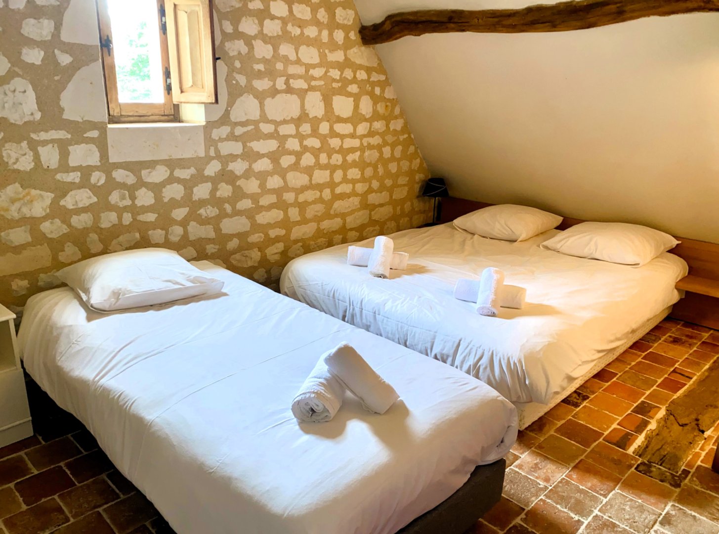 - 2 chambres familiales avec chacune 1 lit Queen size (160x200) et 2 lits simples