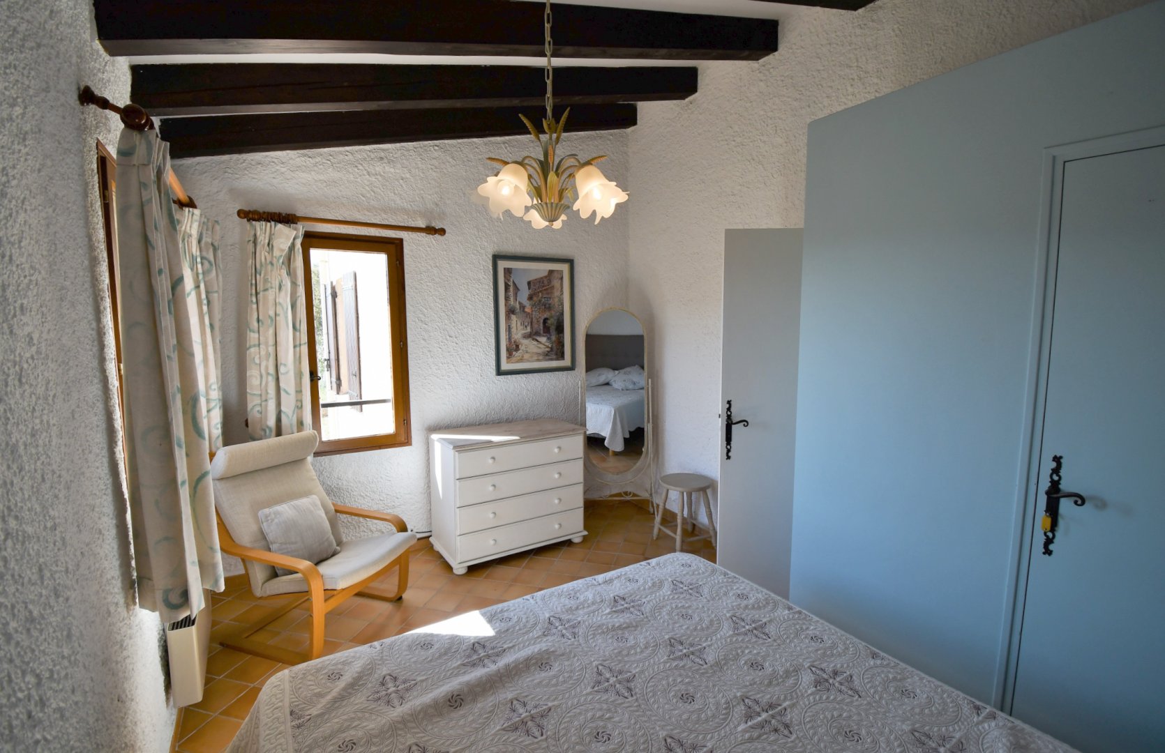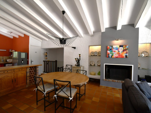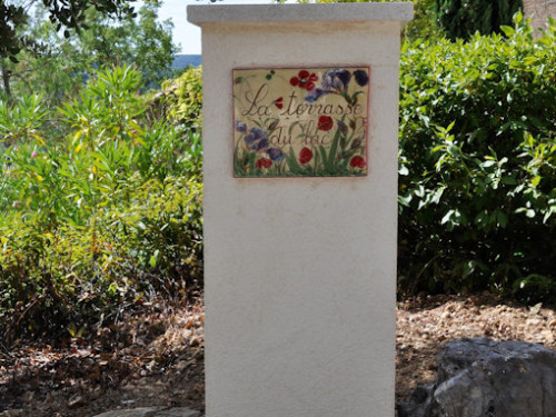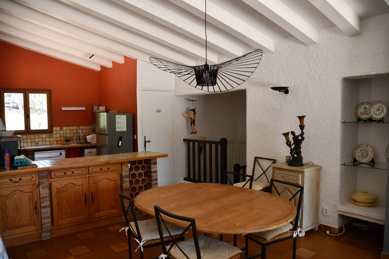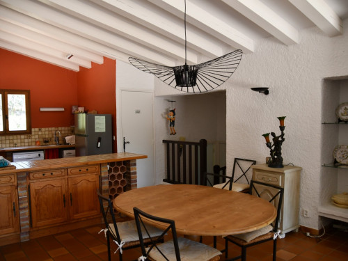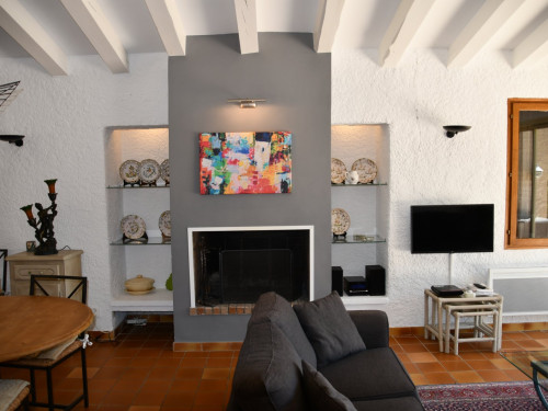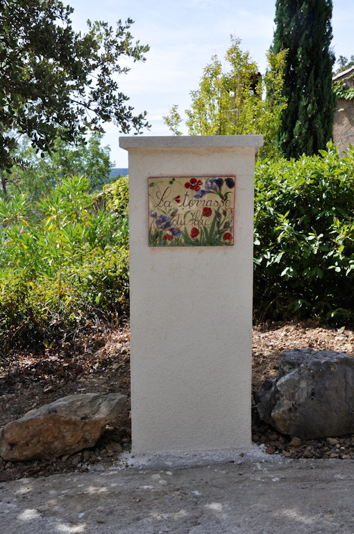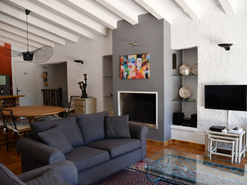 Le mas se trouve en contrebas du chemin, entrée dans le living-salon donnant sur une grande terrasse.