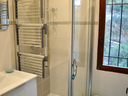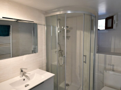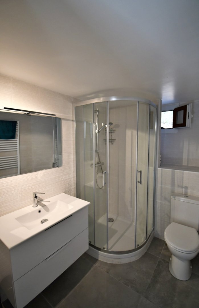 3 chambres dont une grande chambre avec salle de douche et WC en rez de jardin, 1 salle de douche et WC pour les 2 autres autres chambres.