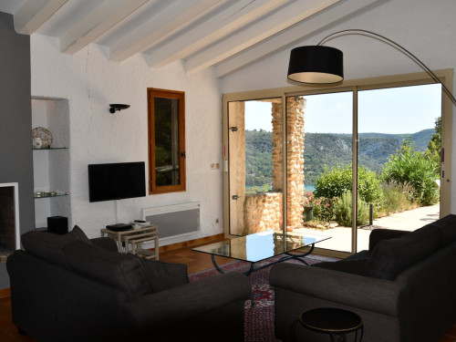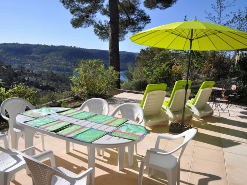 Très belle villa, tranquillité assurée, vue panoramique sur le lac d'Esparron. Beau living avec grande terrasse et bbq, parasols et chaises longues.