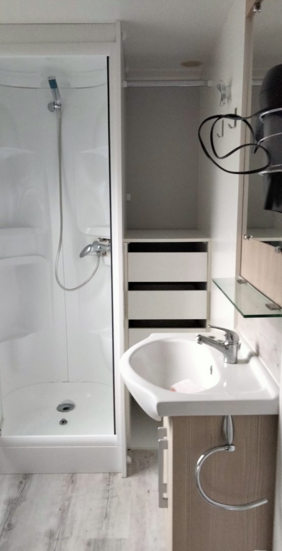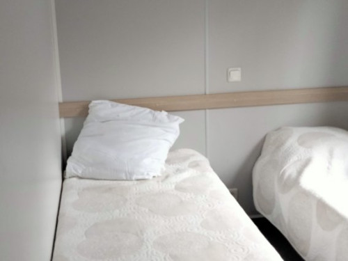 Ce mobil-home spacieux, 18 km Royan, triangle Île d'Oléron – Marennes – Rochefort, dans parc résidentiel avec piscine, jeux pour enfants, lac avec plage, terrain basket "Le Grand Bleu"