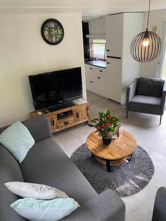 Ce chalet avec climatisation se compose de 2 chambres, d'un salon, d'une cuisine entièrement équipée avec un réfrigérateur et une machine à café, ainsi que de 1 salle de bains avec une douche. Une télévision à écran plat est à disposition.
