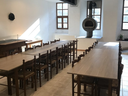 Notre salle de réception, avec sa cuisine semi-professionnelle, son espace salon et son bar, peut accueillir une trentaine de personnes assises pour convenir aux groupes désireux d’une gestion libre.