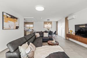 Cette villa avec climatisation se compose de 3 chambres, d'un salon, d'une cuisine entièrement équipée avec un réfrigérateur et une machine à café, ainsi que de 3 salles de bains avec une douche et un sèche-cheveux. Des serviettes et du linge de lit sont à disposition.