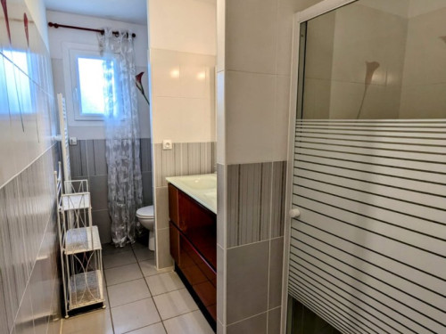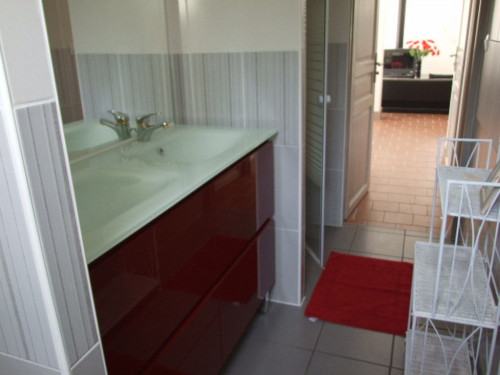 - une chambre avec un lit de 160 (literie neuve) et une salle de douche avec WC et deux vasques joliment décorée