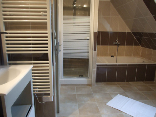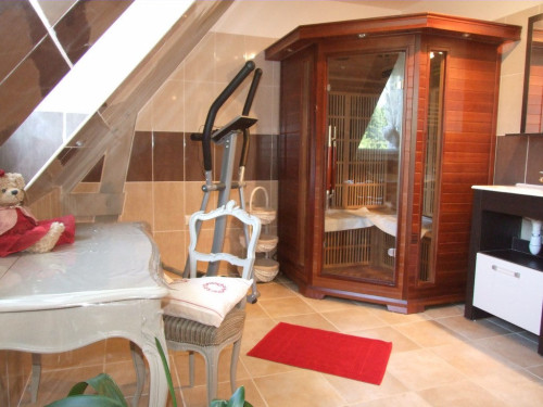 - une SALLE DE BAINS : douche, baignoire, vasque et SAUNA