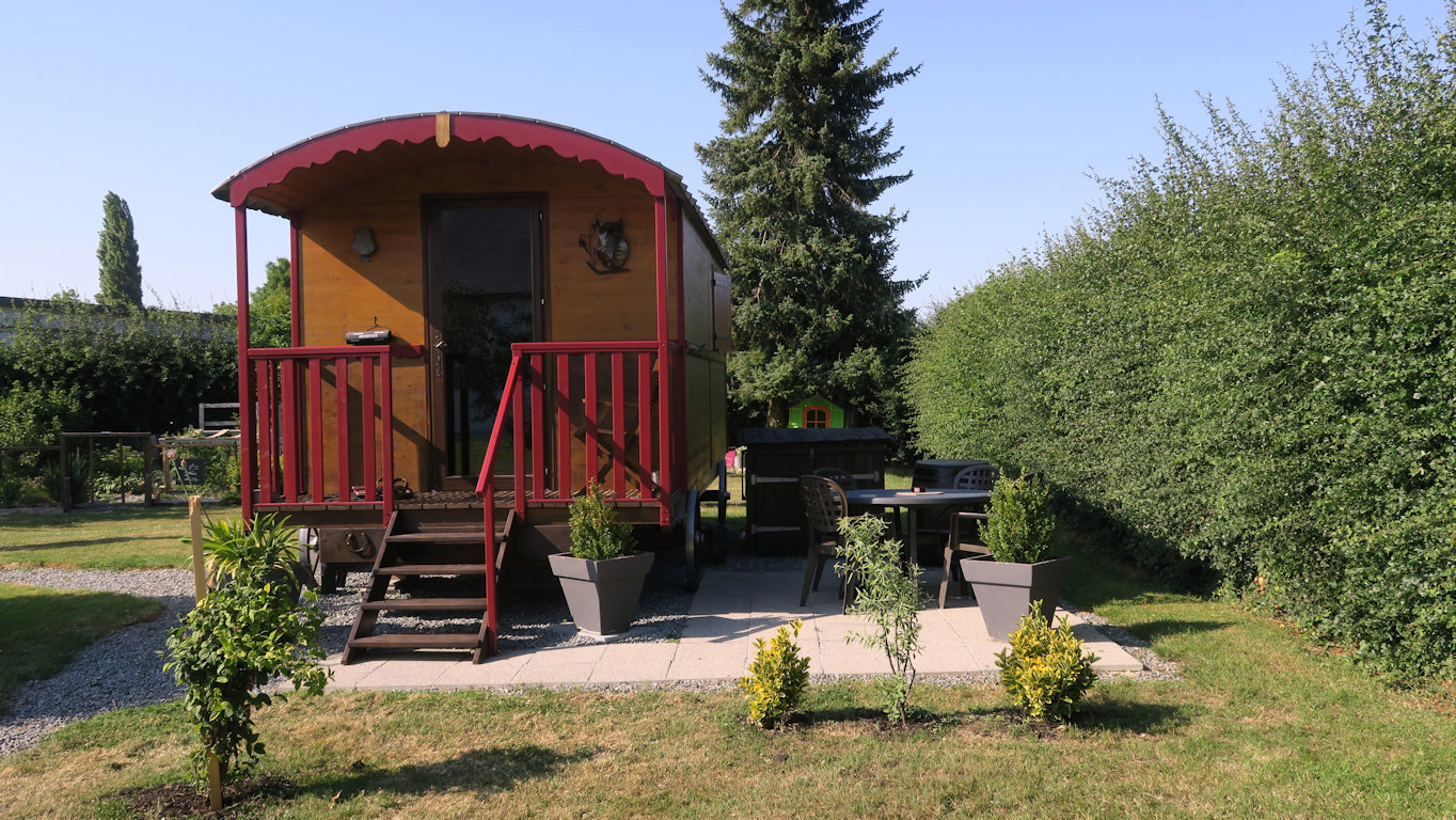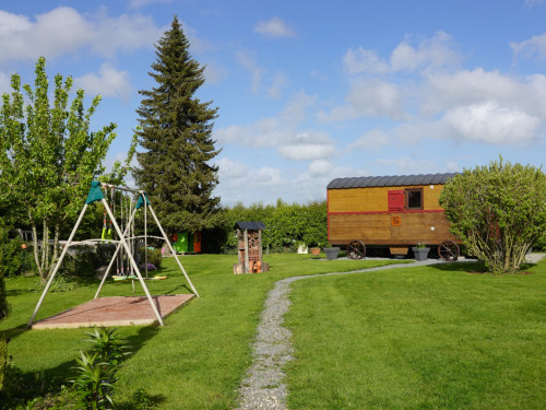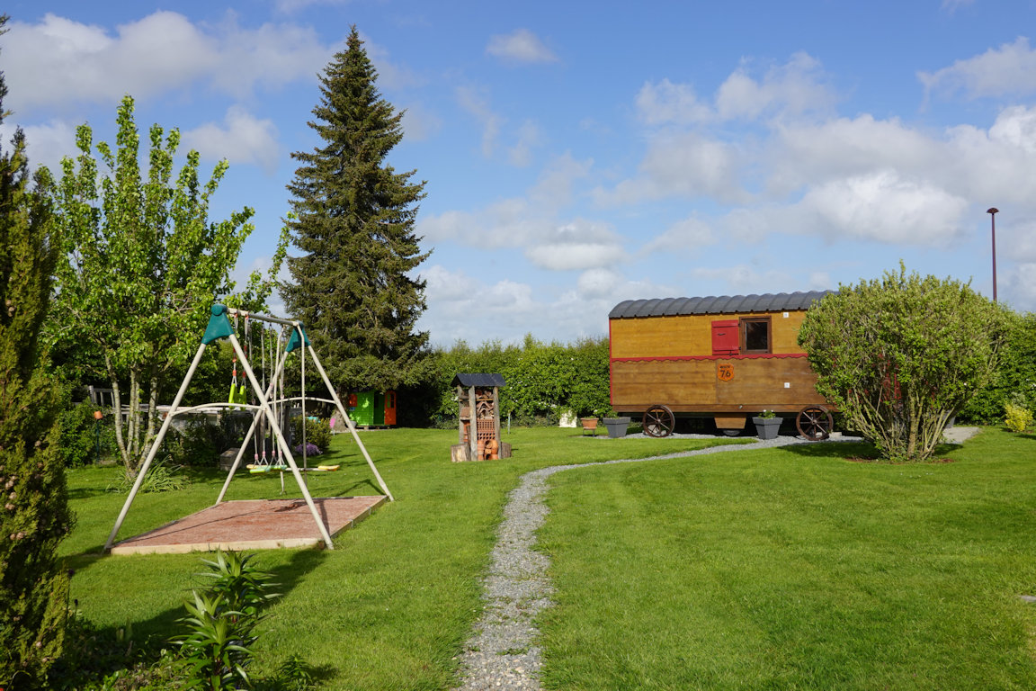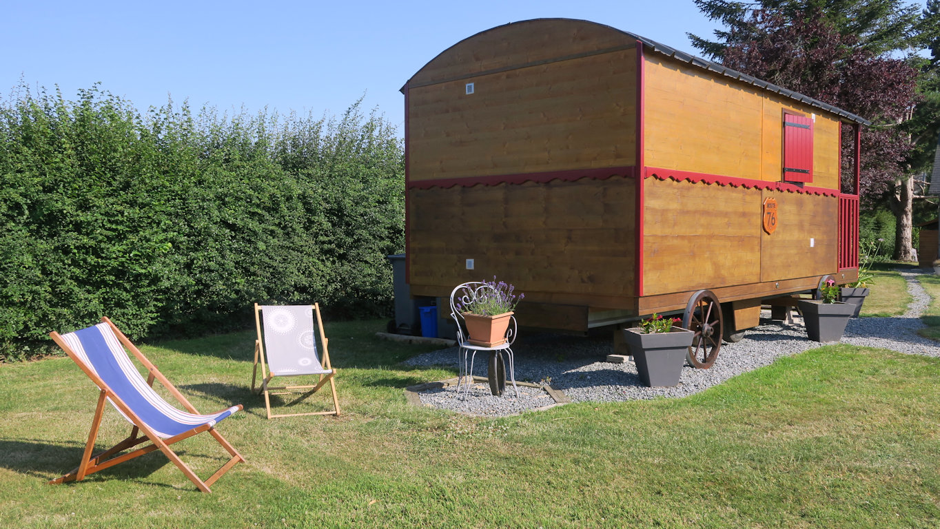 La Roulotte 76, logement insolite tout confort,(chauffée et climatisée) joliment aménagée, et décorée, sur un espace privatif de 500 m², sur les 2000 m² accessible à la clientèle.. Accès au bloc sanitaire réservé qu' au gîte insolite, chez le propriétaire, ainsi qu'un accès à la bibliothèque, et à la buanderie, espace commun aux deux gîtes.