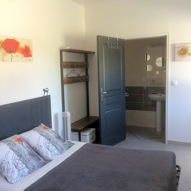 Salle d'eau équipée avec douches à l'Italienne, lavabo et WC, chauffage par radiant électrique.