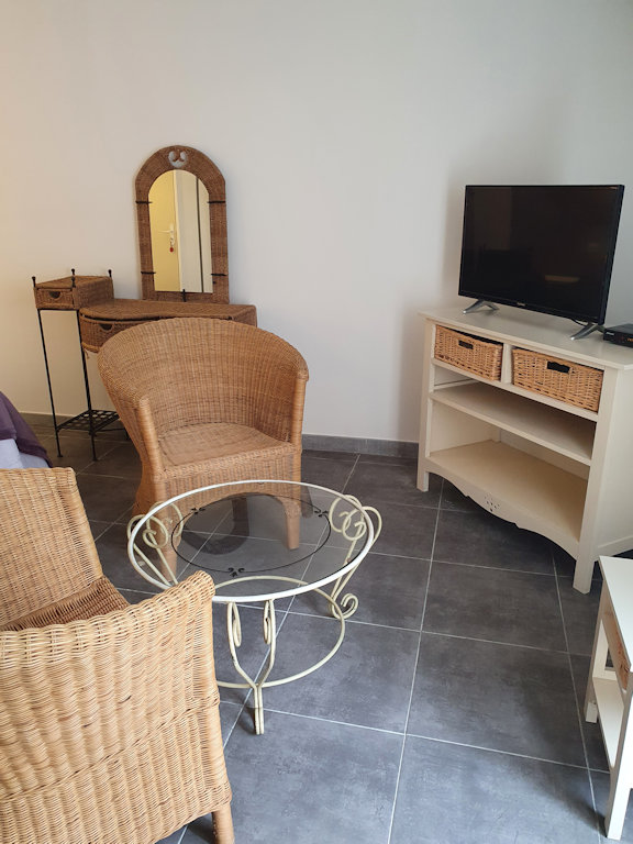 • T1 : 28 m² lit 160 dans grande pièce avec coin salon, TV. Salle de bain et wc séparé, kitchenette dans une pièce séparée avec four, four micro-ondes, plaque, frigo