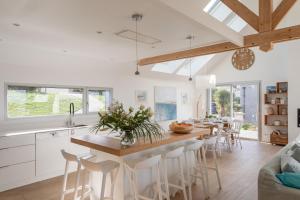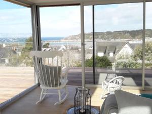 Disposant d’une terrasse et offrant une vue sur la mer, cette maison de vacances possède 4 chambres, un salon, une télévision, une cuisine équipée avec un réfrigérateur et un lave-vaisselle, ainsi que 4 salles de bains avec une douche. Cet hébergement met à votre disposition des serviettes et du linge de lit.
