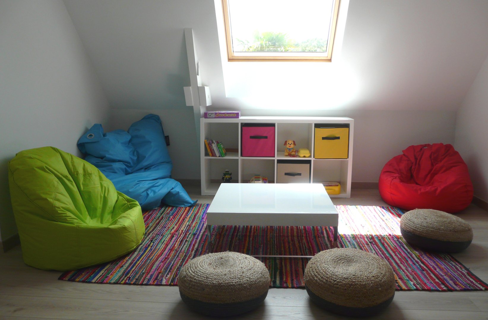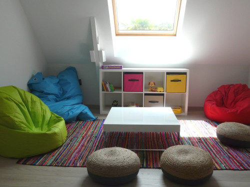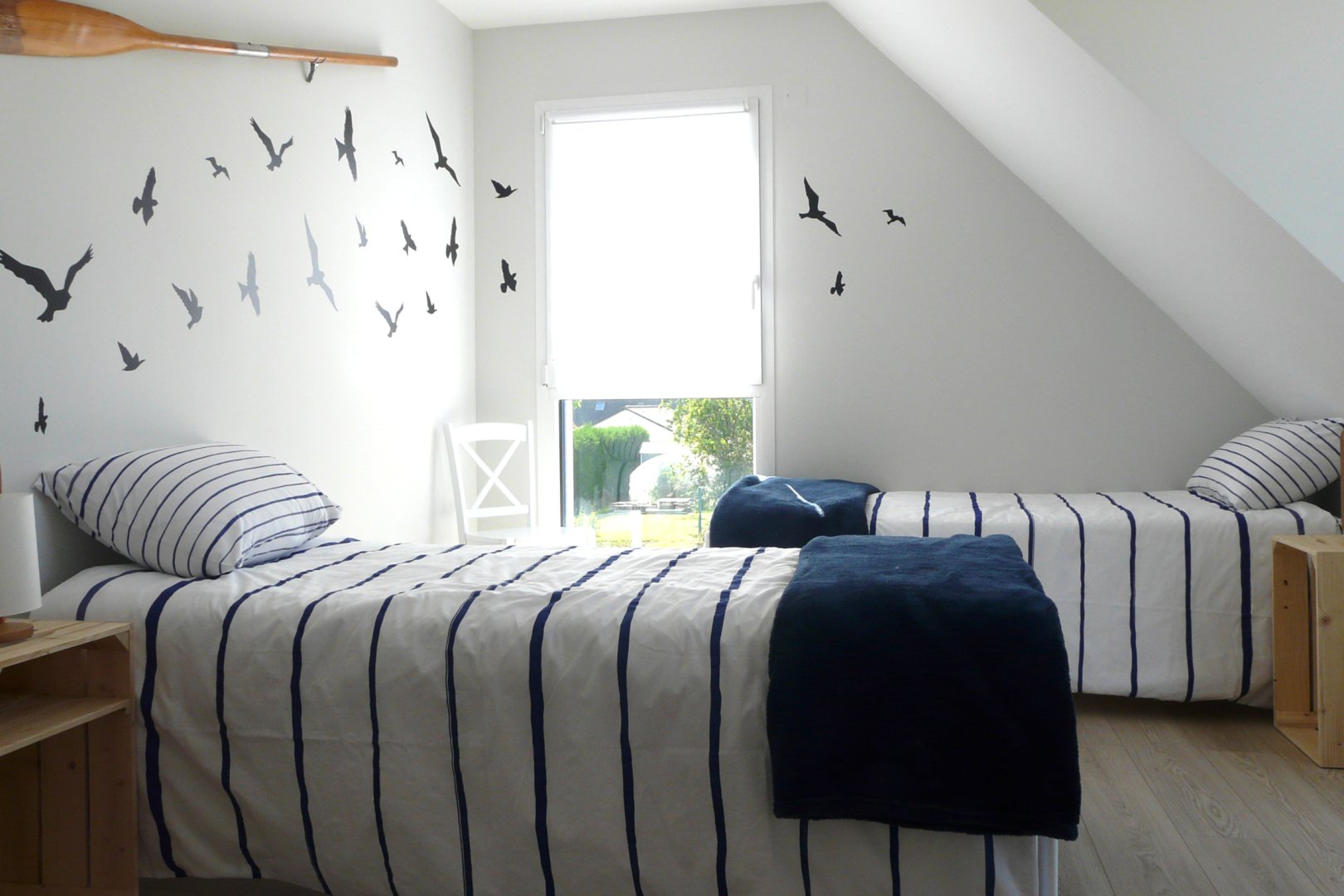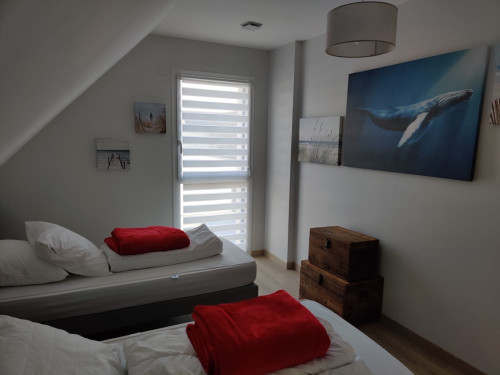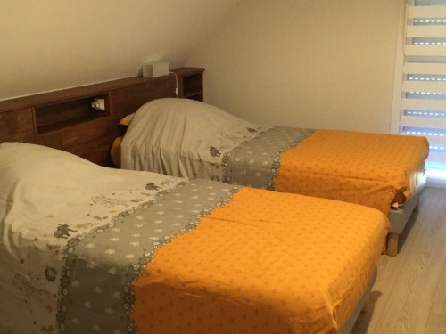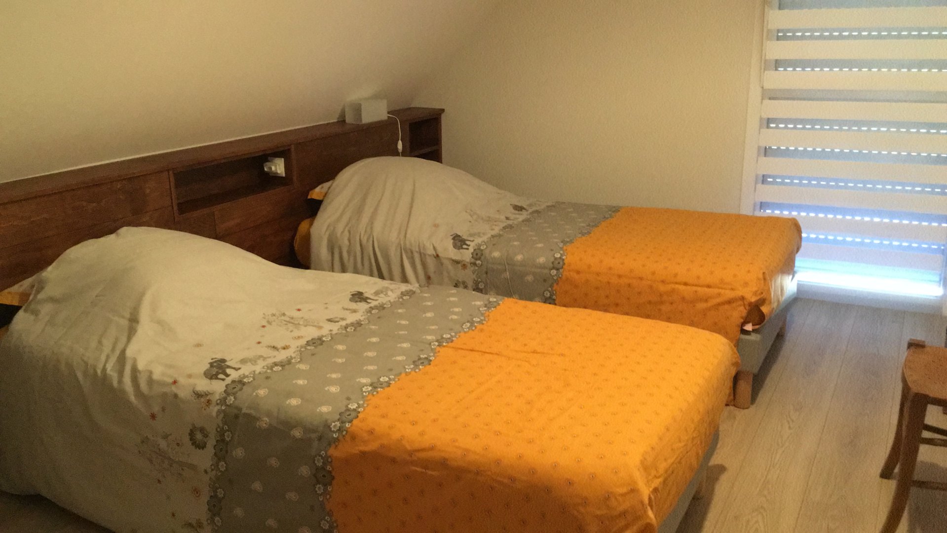 À l'étage : 1 chambre avec un lit de 160x200, 1 chambre avec 2 lits de 90x200, 1 chambre avec 2 lits de 90x190, 1 salle de bain, 1 WC. Un espace détente est dédié aux enfants sur le pallier. Ils y trouveront divers jeux et livres.