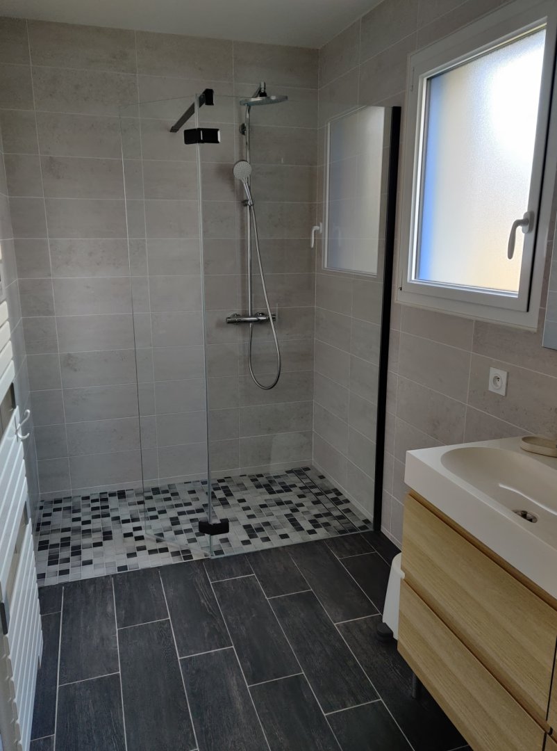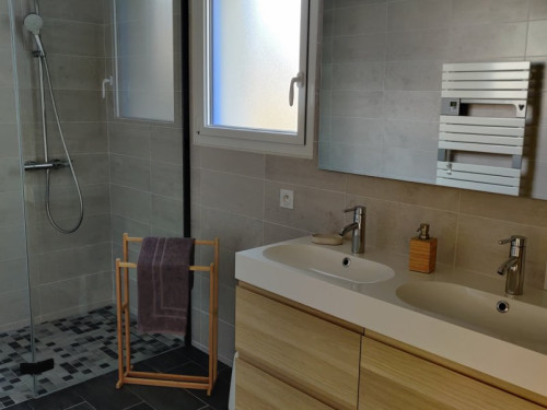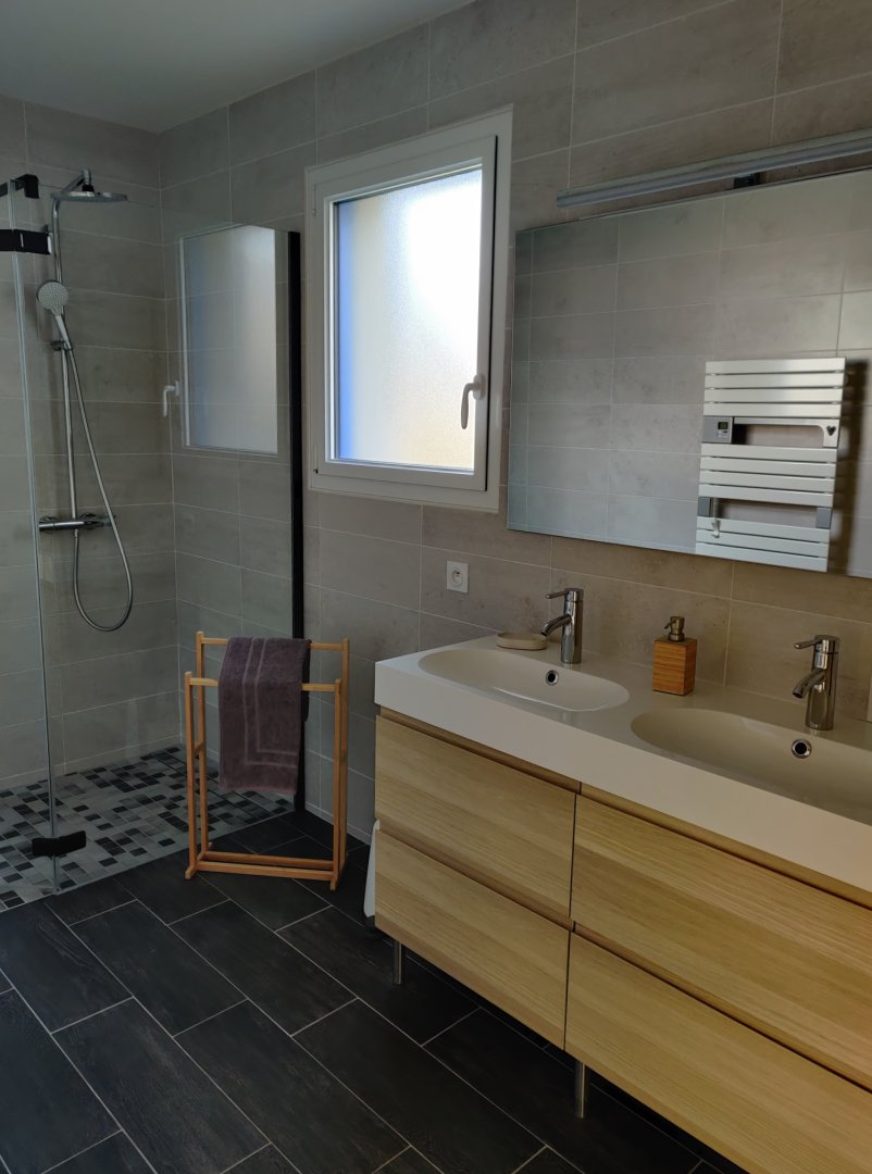 Au rez-de-chaussée se trouve 1 chambre avec 1 lit de 160x200, 1 WC, 1 salle de douche.
