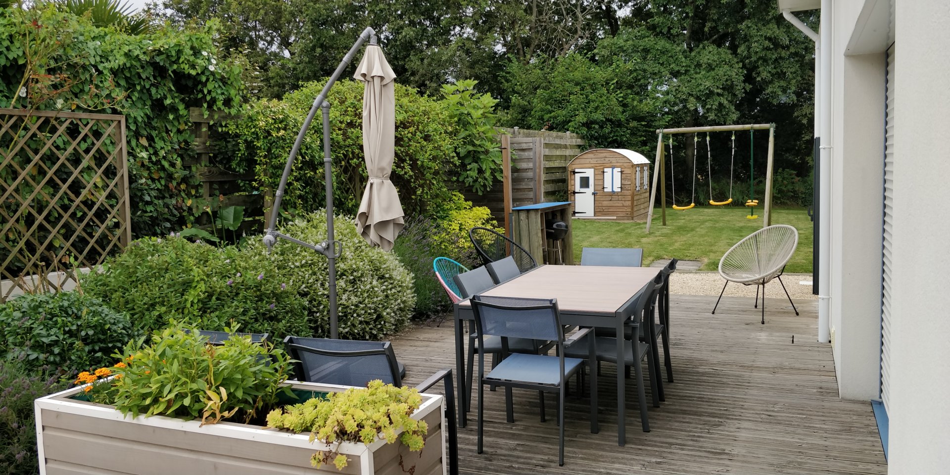 L'extérieur est entièrement clos et agrémenté pour votre confort (salon de jardin, barbecue, jeux d'extérieur). Une table de ping-pong est à votre disposition.