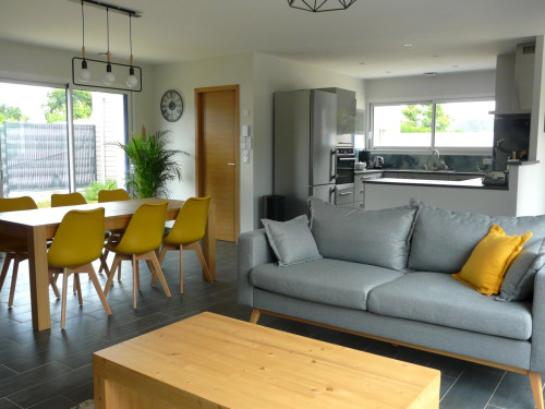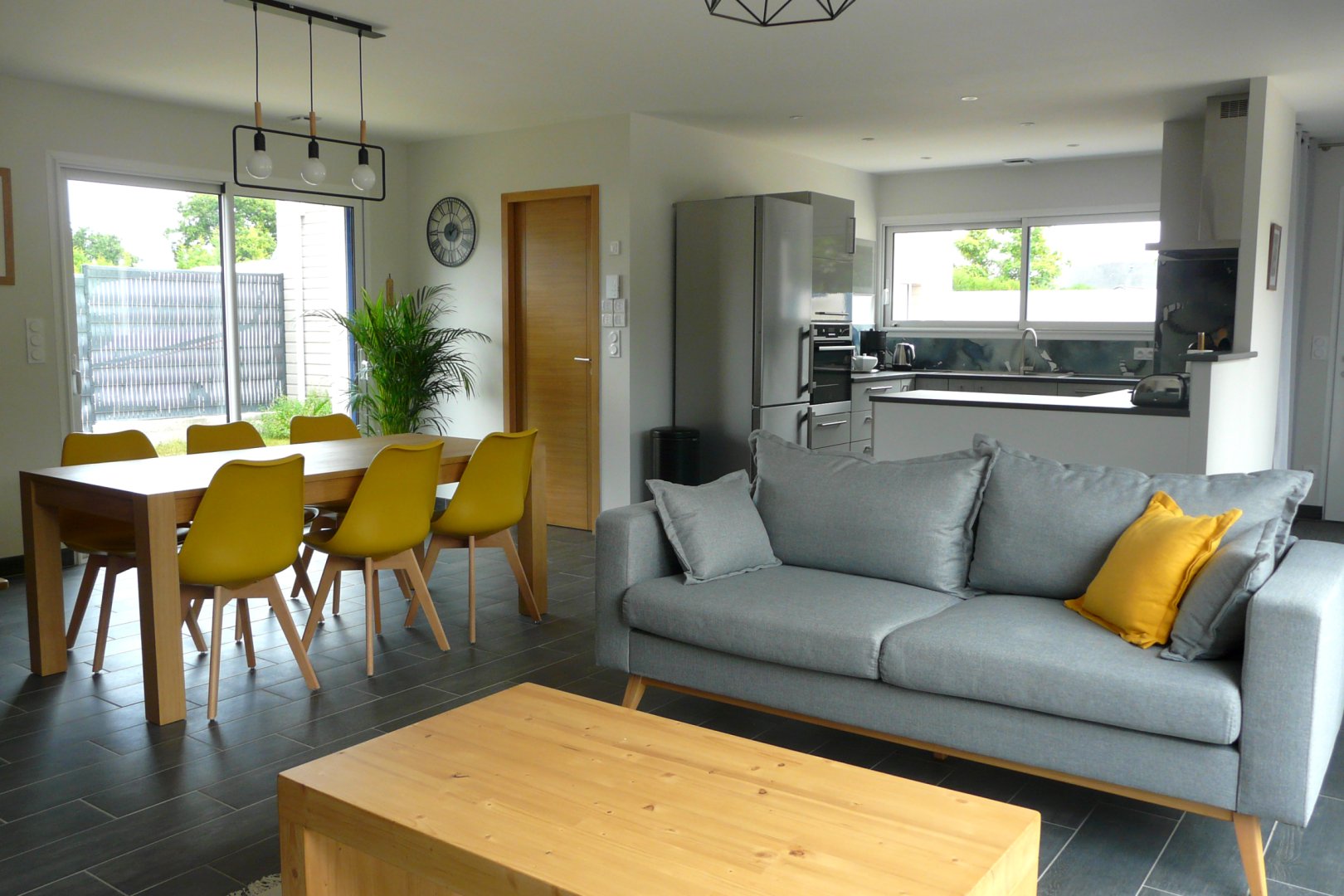La pièce de vie est agréable et spacieuse avec cuisine ouverte, idéale pour les vacances ou les weekends famille ou entre amis.