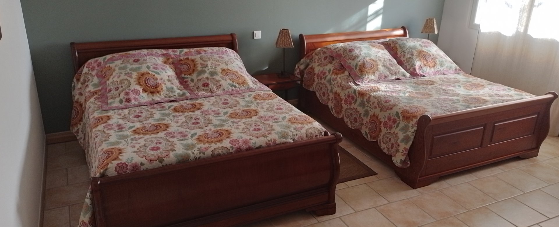 - deux chambres : la 1ère avec un lit en 140 et un grand rangement, la 2ème avec un lit en 140 et un lit en 90. On peut ajouter un lit d'appoint