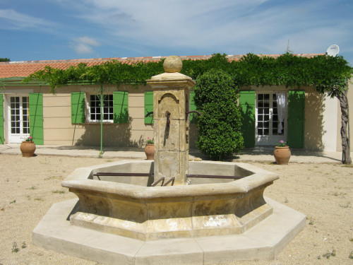 Devant la villa, la cour vous accueille où vous pourrez vous garer en toute sécurité et même jouer aux boules, clôture et portail automatique
