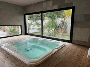 Situé à Pérols, l’hébergement Villa de luxe piscine spa propose une piscine extérieure ouverte toute l'année, un sauna et un bain à remous. Il dispose également d’un balcon offrant une vue sur la piscine et le jardin. Cette villa comprend une piscine privée, un jardin et un parking privé gratuit.