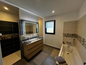 Cette villa comporte 3 chambres, une cuisine avec un réfrigérateur et un lave-vaisselle, ainsi que 2 salles de bains avec une baignoire, un sèche-cheveux et un lave-linge. Des serviettes et du linge de lit moyennant des frais supplémentaires.