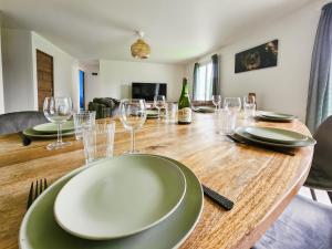 Cette villa se compose de 3 chambres, d'un salon, d'une cuisine entièrement équipée avec un réfrigérateur et une machine à café, ainsi que de 1 salle de bains avec une douche et un sèche-cheveux. Des serviettes et du linge de lit sont à disposition.