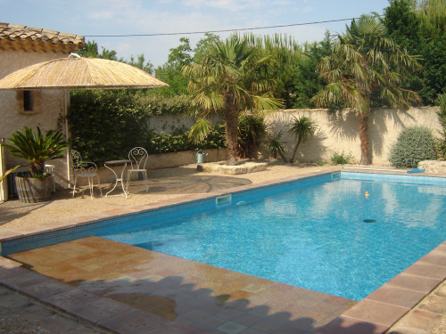 Grande PISCINE PRIVÉE clôturée par barrière.