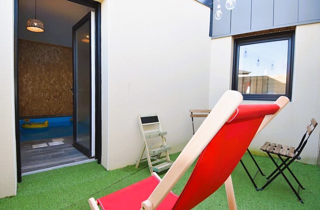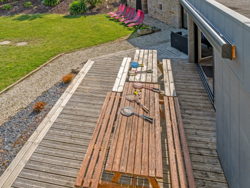 - une grande terrasse en bois exotique exposée plein sud avec salon d'extérieur, barbecue et brasero ;