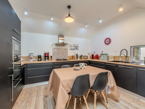 • Une cuisine ouverte, moderne et entièrement équipée, parfaite pour partager des repas bretons.